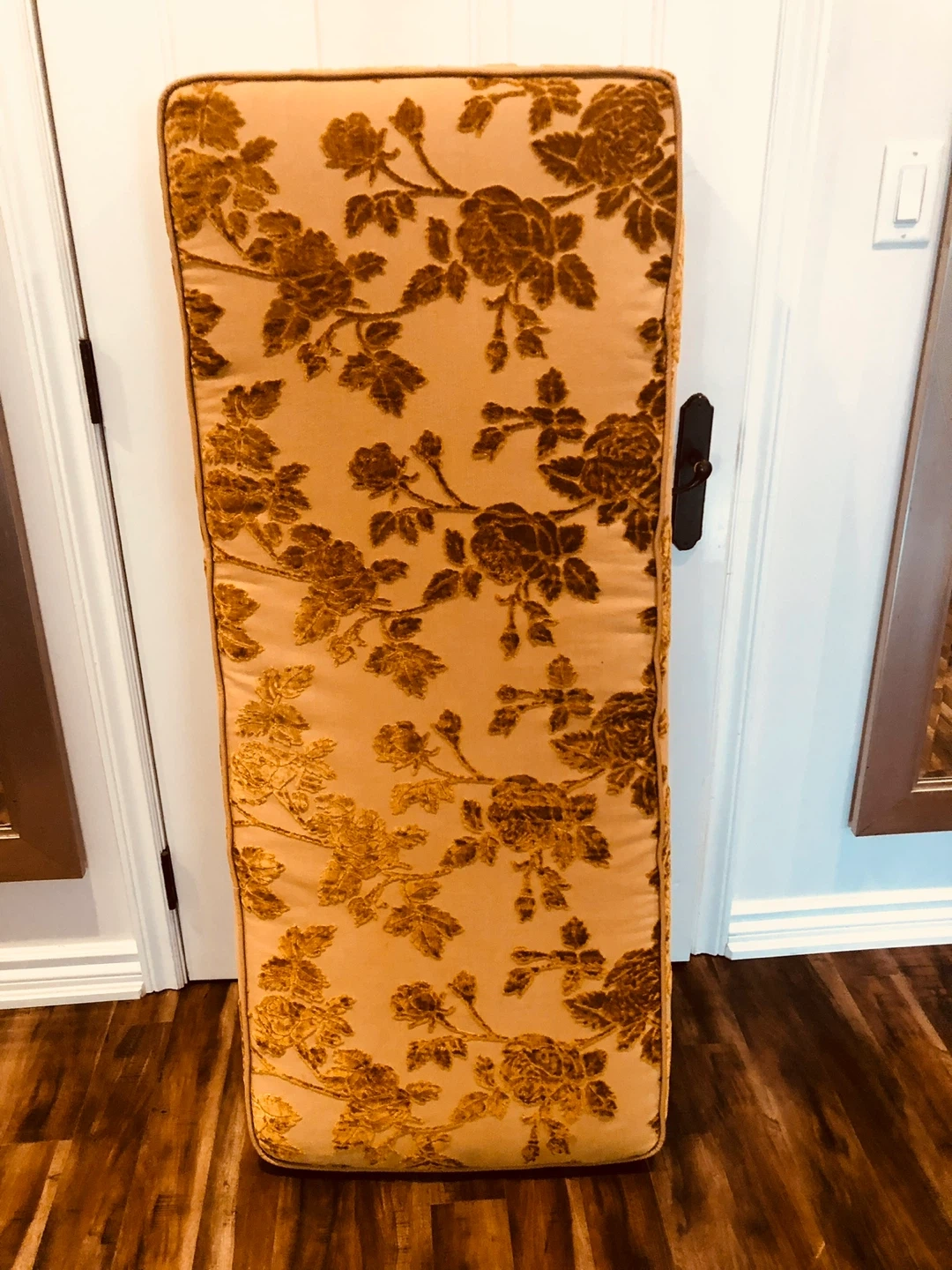 Selling a set of beautiful custom made cushions with a lovely floral pattern! They both measure approximately 54 inches in length and 22 inches in width and 5 inches thick. These cushions are sure to add a touch of elegance to any space!