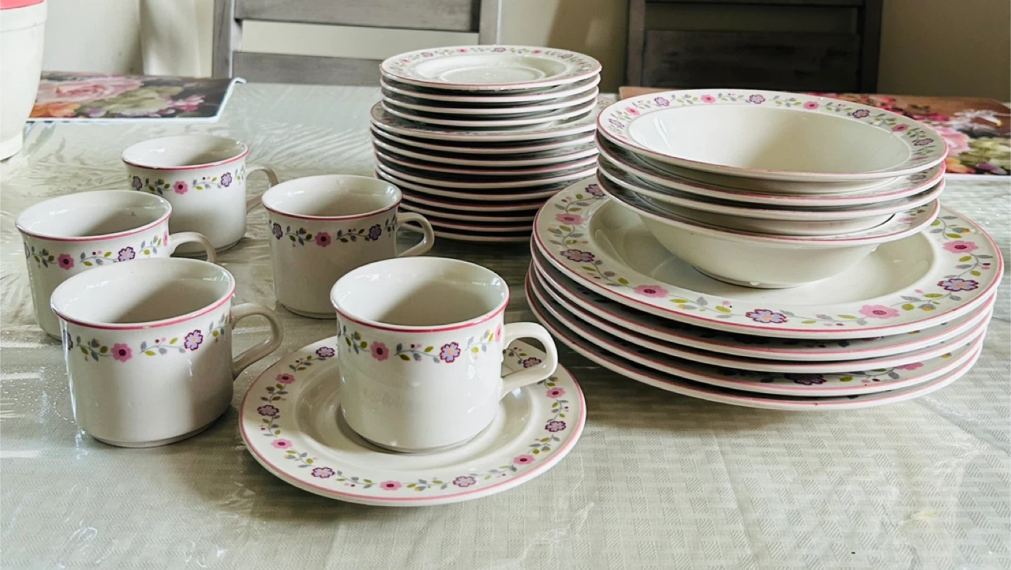 25Selling a complete dinnerware set featuring a charming floral pattern. Includes plates, bowls, cups, and saucers. Perfect for adding a touch of spring to your table!
