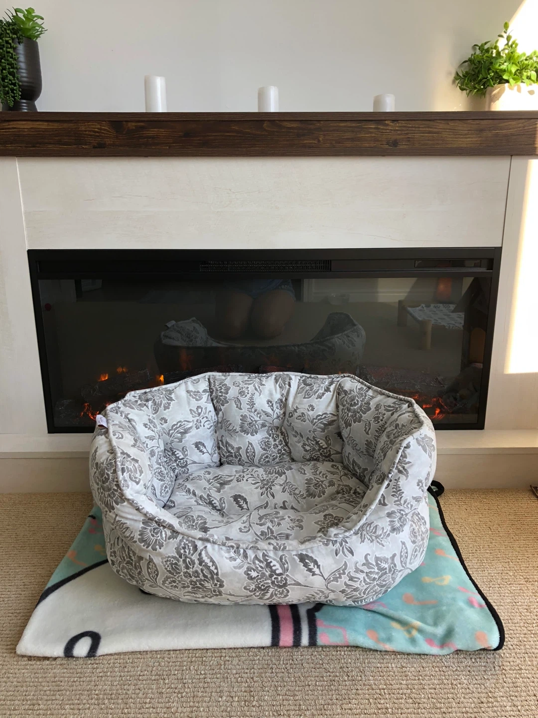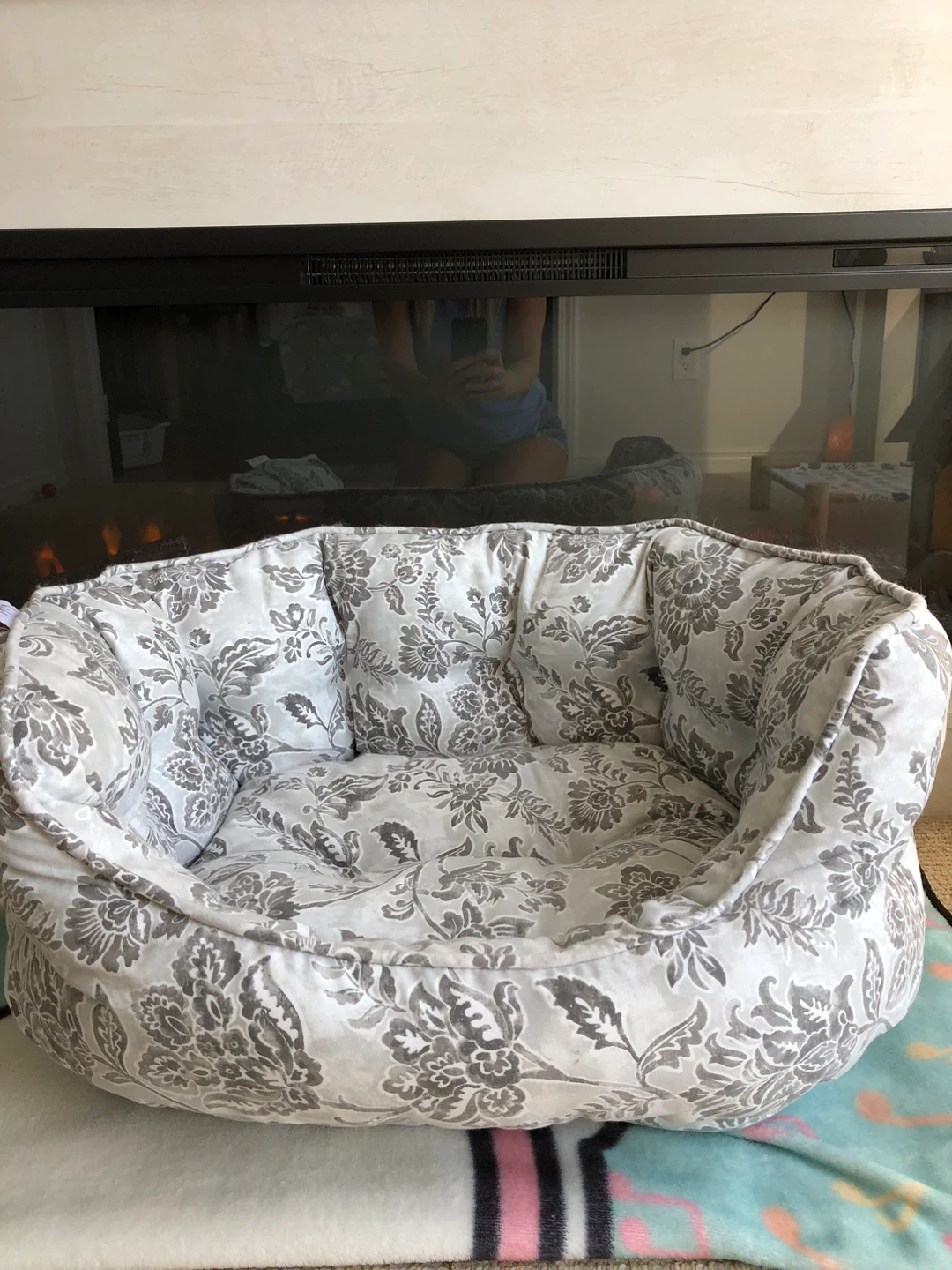 Selling a comfy pet bed with a lovely floral pattern! The bed is soft and has supportive cushioning all around, making it a cozy spot for your pet to relax. Like new!