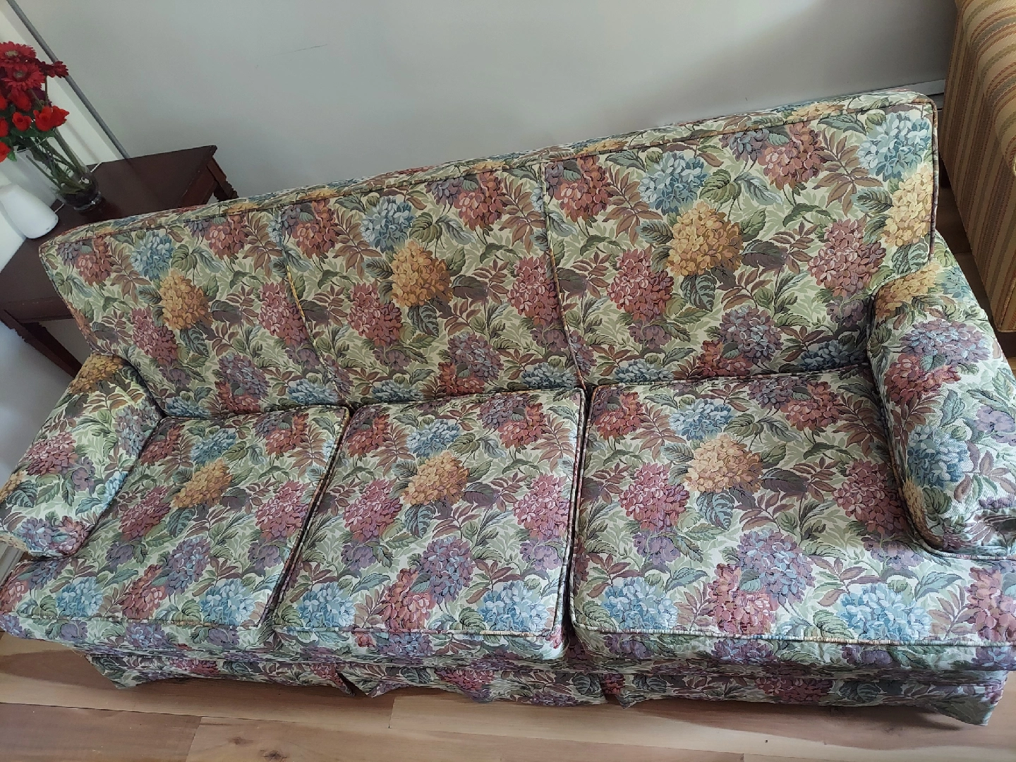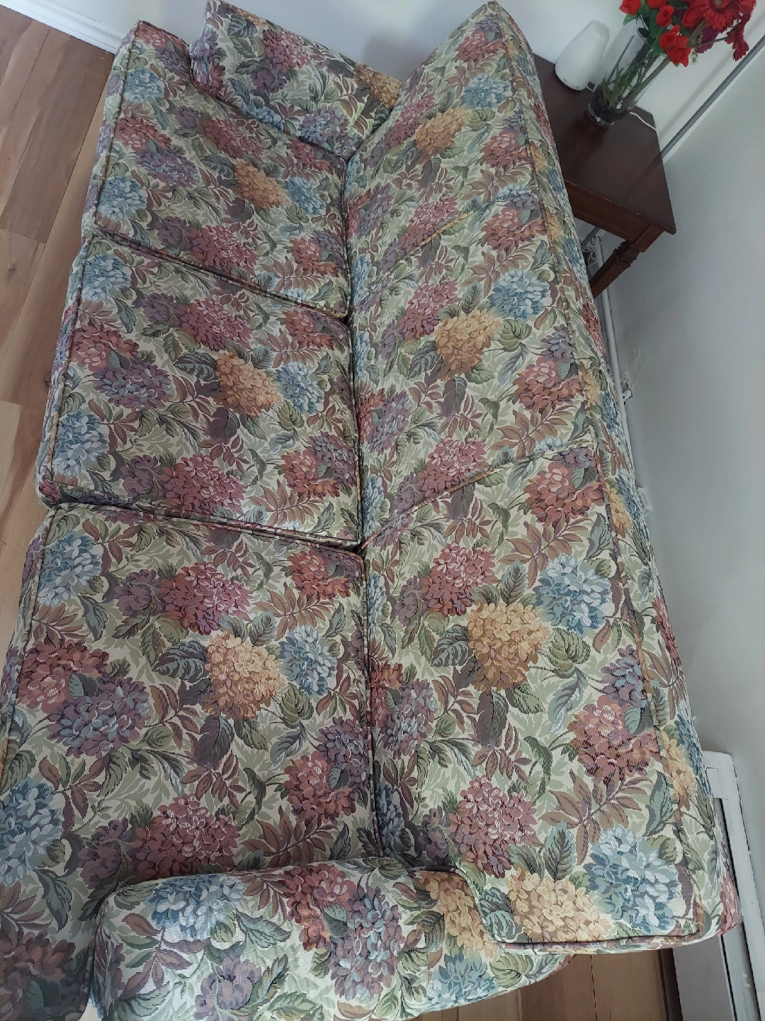 Selling a comfy sofa with a floral pattern, perfect for adding a touch of vintage charm to your living room! It's in good condition and ready for a new home