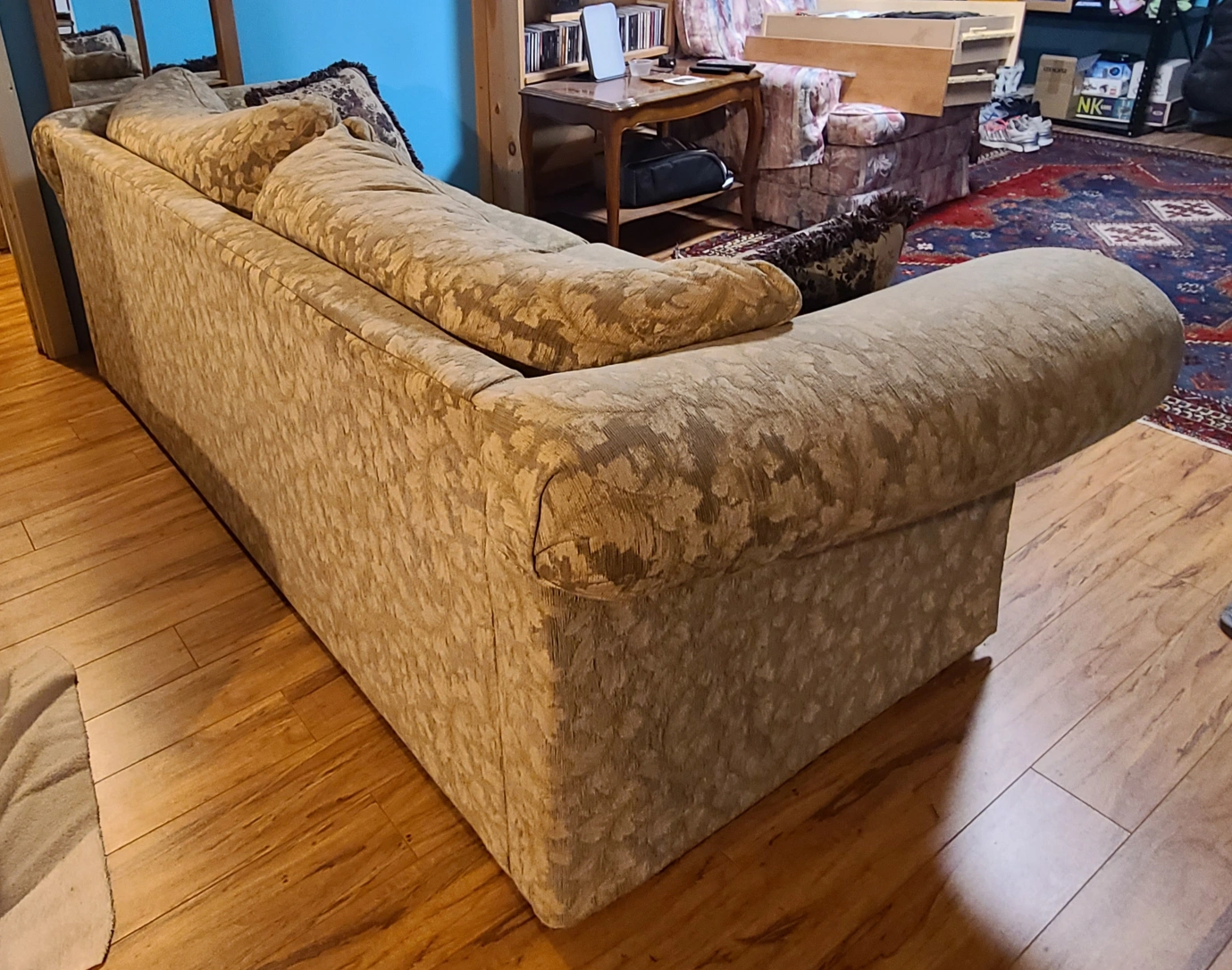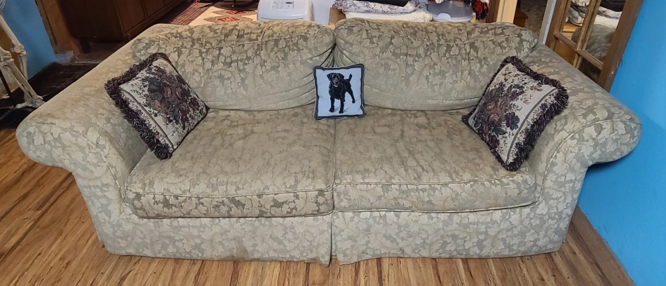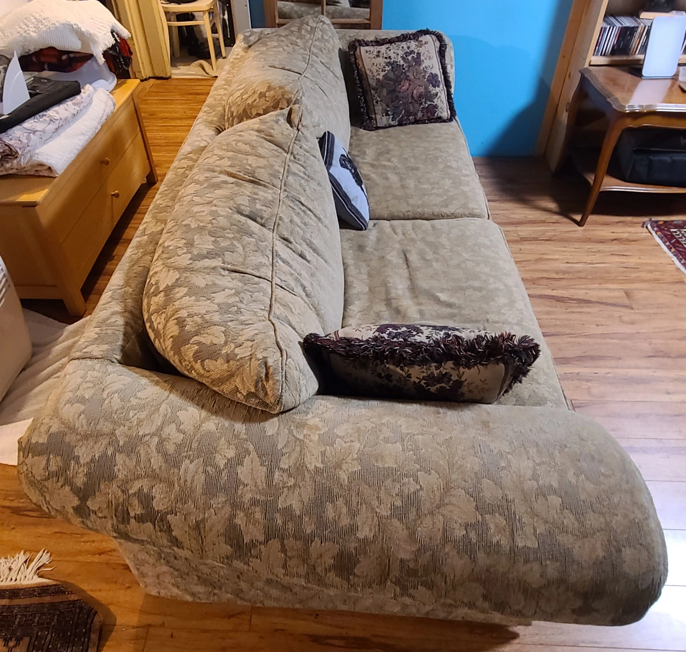 Selling a comfortable sofa with a floral pattern. It's in good condition and would be a great addition to any living room. The sofa includes several throw pillows for added comfort and style. Perfect for relaxing after a long day! Pick up only. No delivery. Located in North East section in Guelph - N1E 1A8 contact: md-ra@hotmail.com