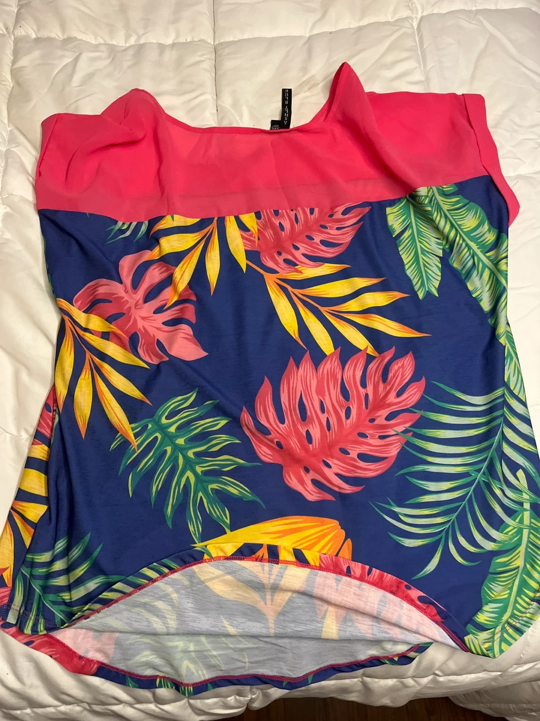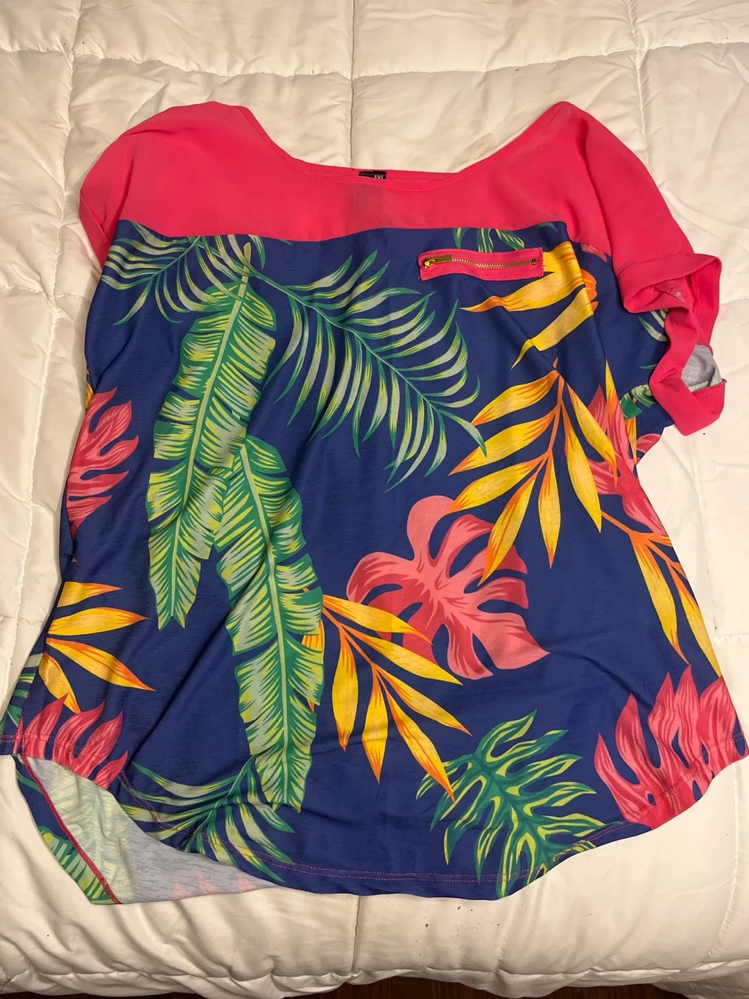 65Cute floral print top with a pink accent. It's in great condition and ready for a new home! Size X-Large