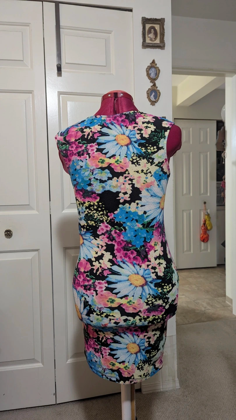 86This is a sleeveless dress with a colourful floral pattern. It features a V-neck and a fitted silhouette. The dress is perfect for a casual day out or a summer party I am moving! Hence why I'm selling my summer gear now!