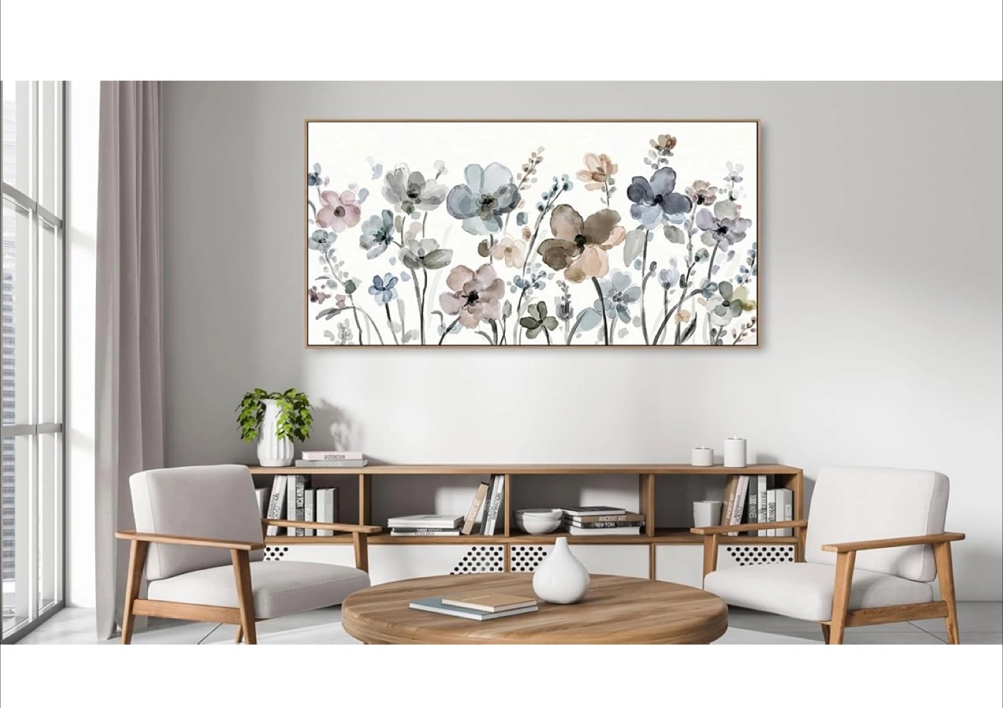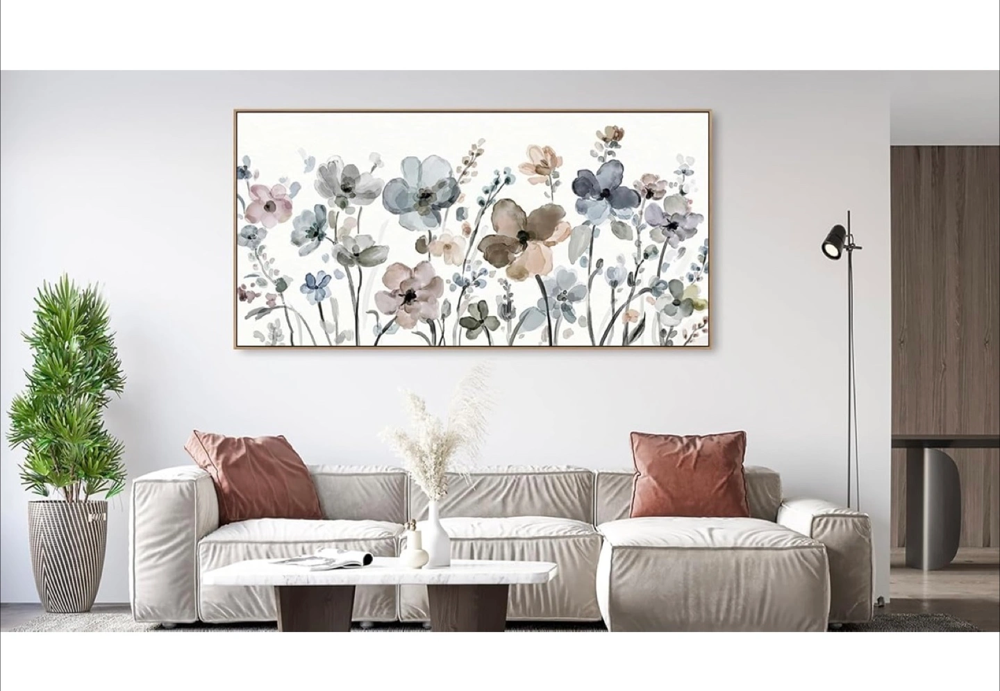 Floral Watercolor Wall Art - 40x20 inches