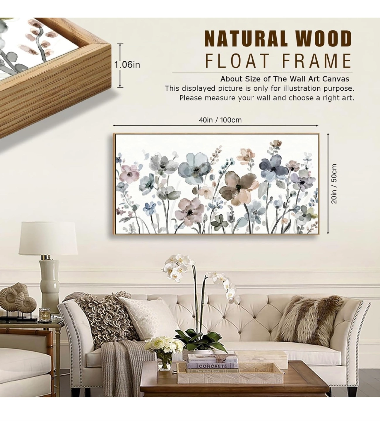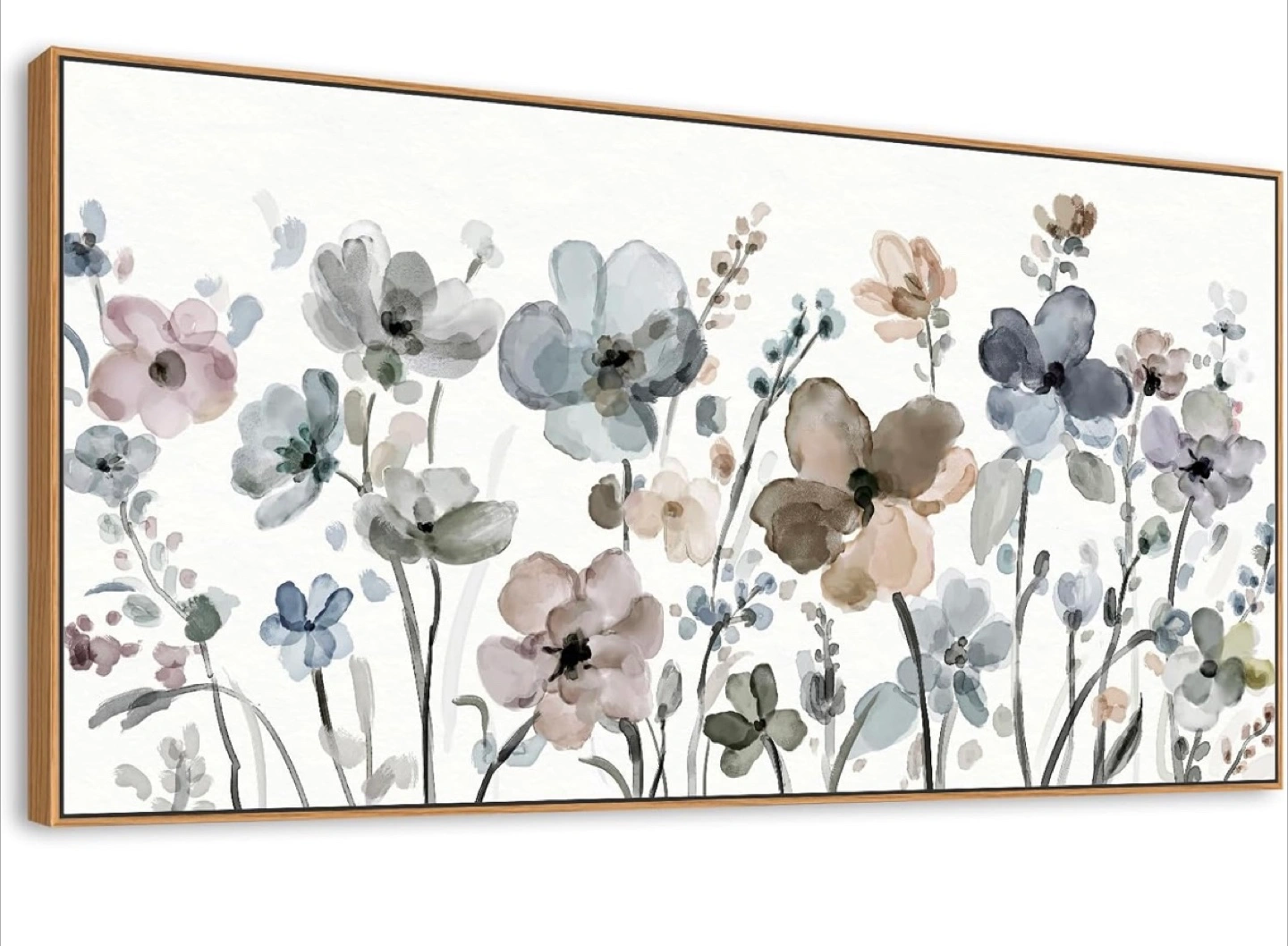 Add a touch of elegance to your home with this beautiful floral watercolor wall art! The artwork features a lovely arrangement of flowers in soft, muted tones. It's framed with natural wood NINEASO Flowers Framed Canvas Wall Art - Navy Taupe Flowers Pictures Abstract Floral Wall Decor Botanical Painting Print Artwork for Living Room Bedroom Home Office Decorations 50x100cm Natural