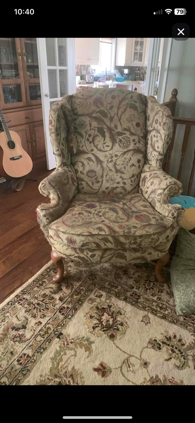 Selling a cozy wingback armchair with a floral pattern. It's a comfortable piece that would look great in a living room or reading nook. It shows some signs of use but still has lots of life left in it! Have 2 for sale. Price is for each one
