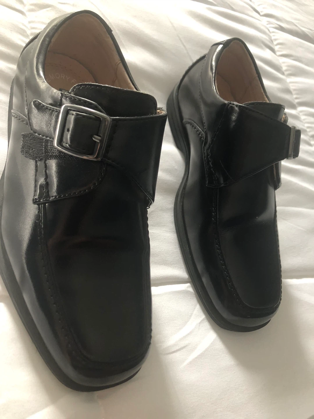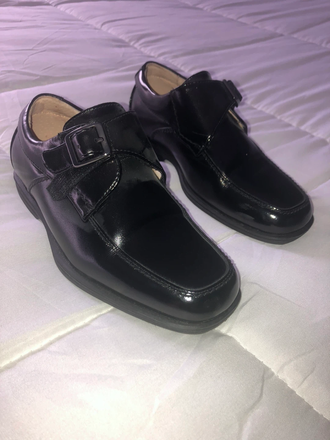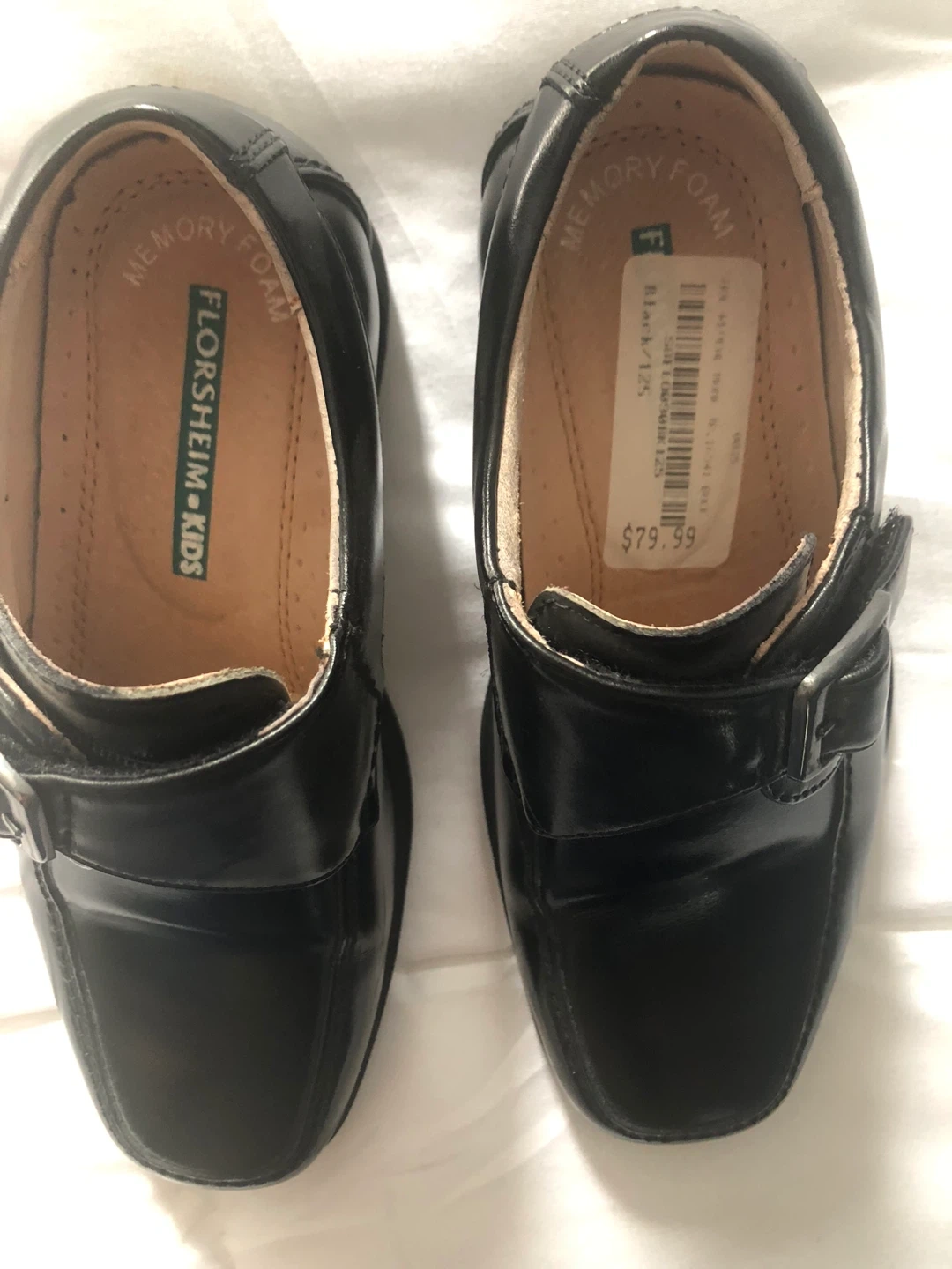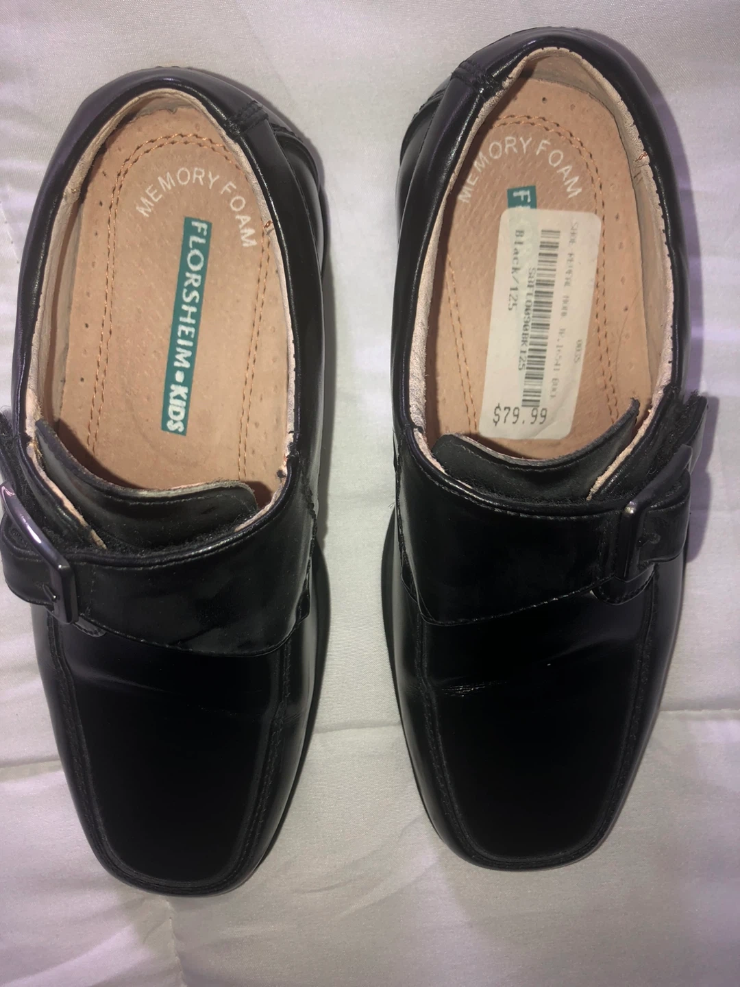 31Selling a pair of Florsheim Kids black dress shoes. They feature a memory foam insole for extra comfort and a stylish buckle detail. They are size 12.5 and were originally bought for $79.99
