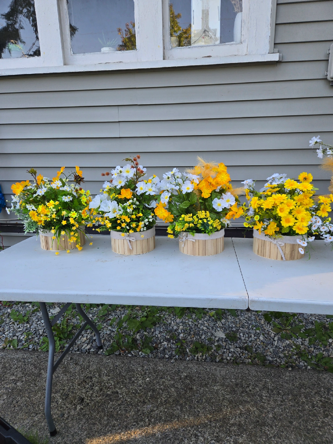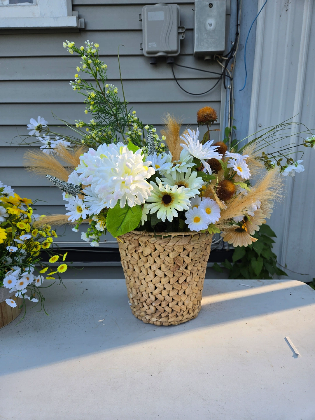60Selling a lovely flower arrangement. It would be great for indoor or outdoor decor the big one basket is $15.