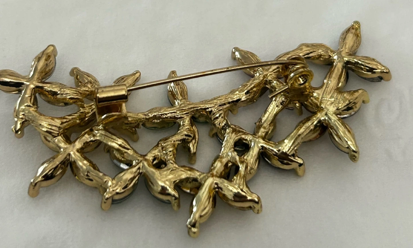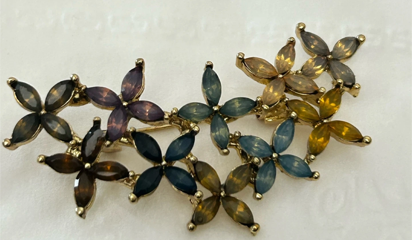 Beautiful flower brooch in excellent condition! The brooch features a lovely floral design with petals in shades of purple, blue, and yellow. It would be a great addition to any outfit or collection.