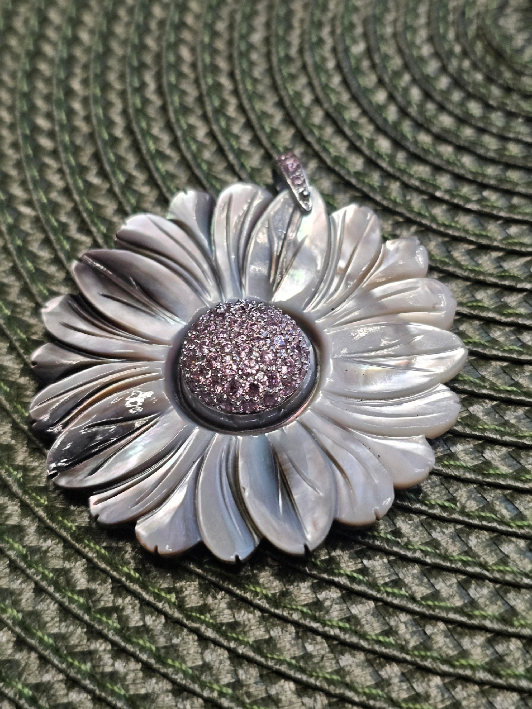 Beautiful flower pendant stamped 925 in excellent condition. The pendant features a flower design with detailed petals and a sparkling centre. It would make a lovely addition to any jewelry collection