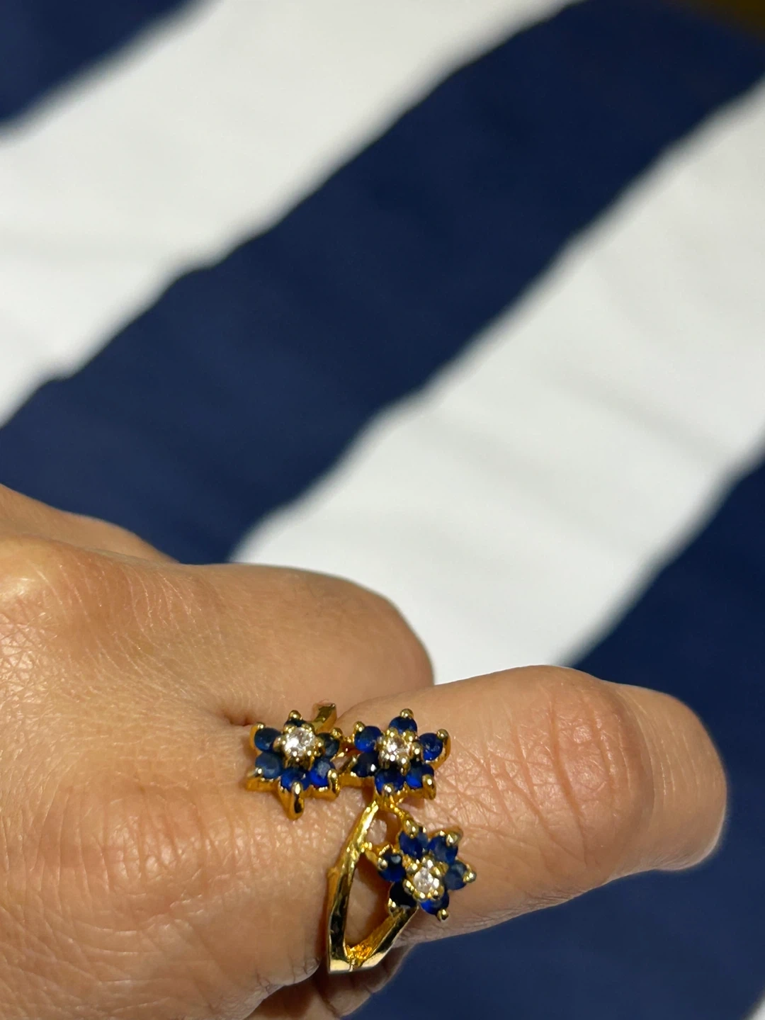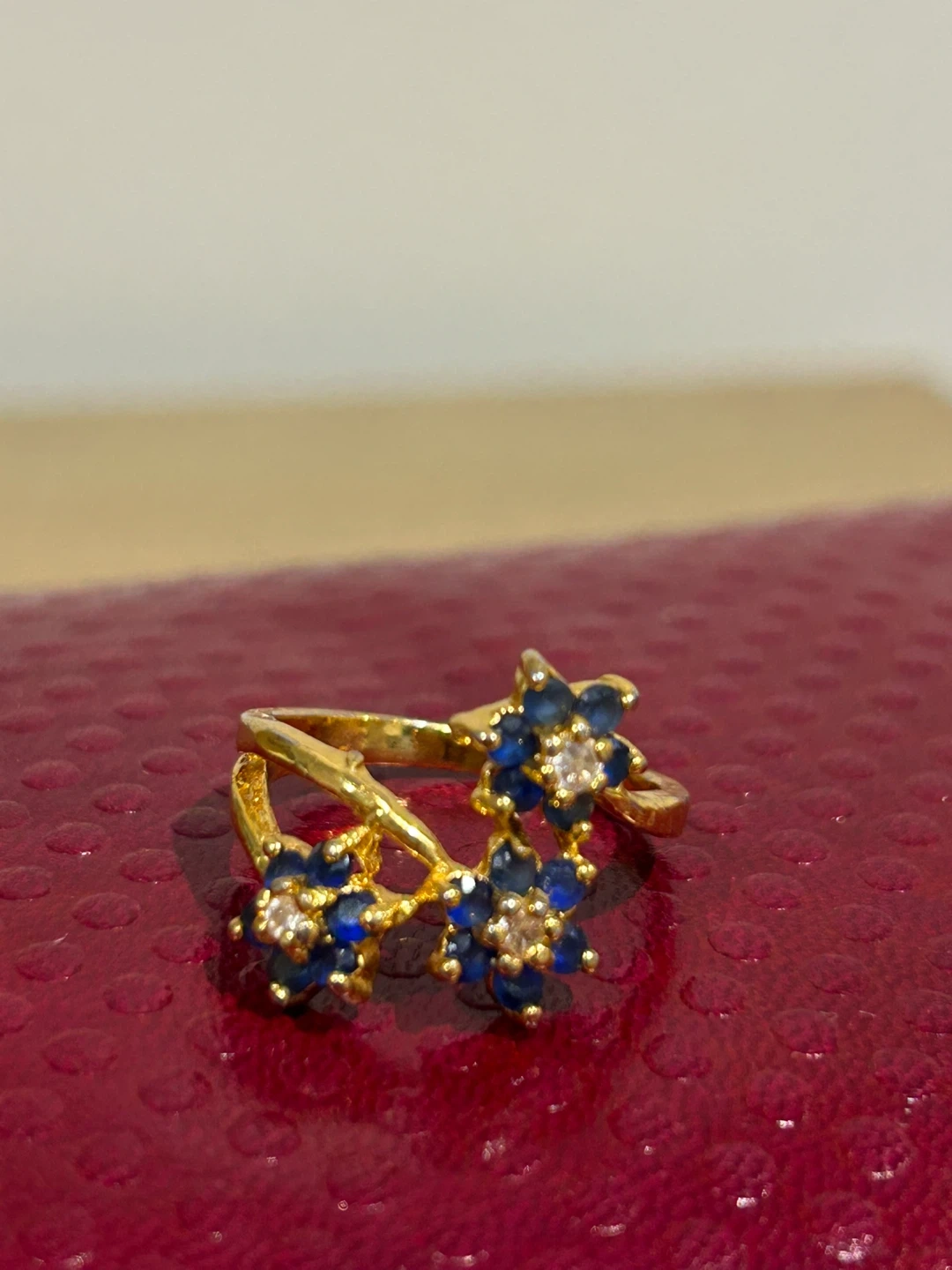 Beautiful gold ring with blue flower details! It's in great condition and would make a lovely addition to any jewelry collection. Ring size 6. Never worn.