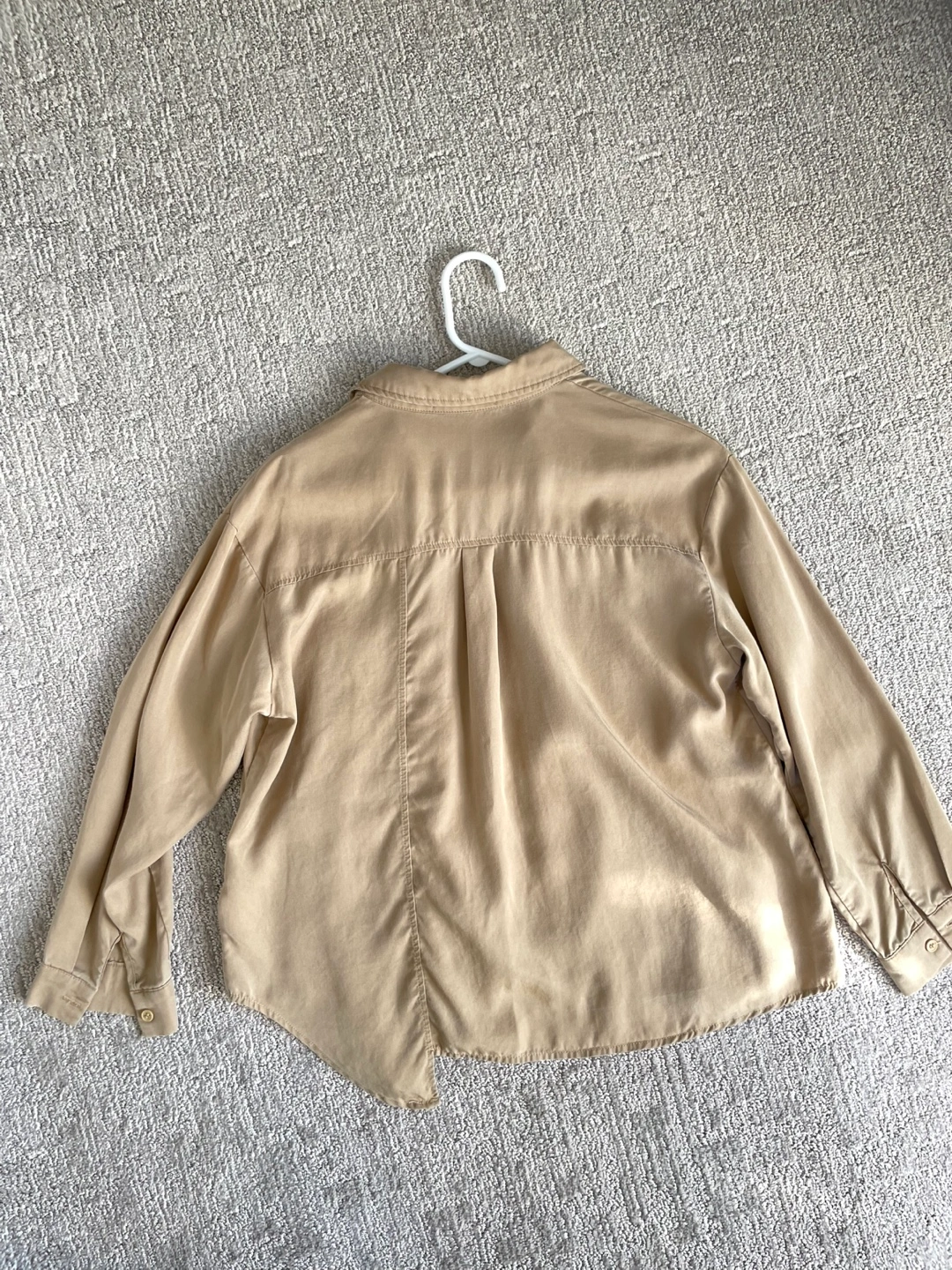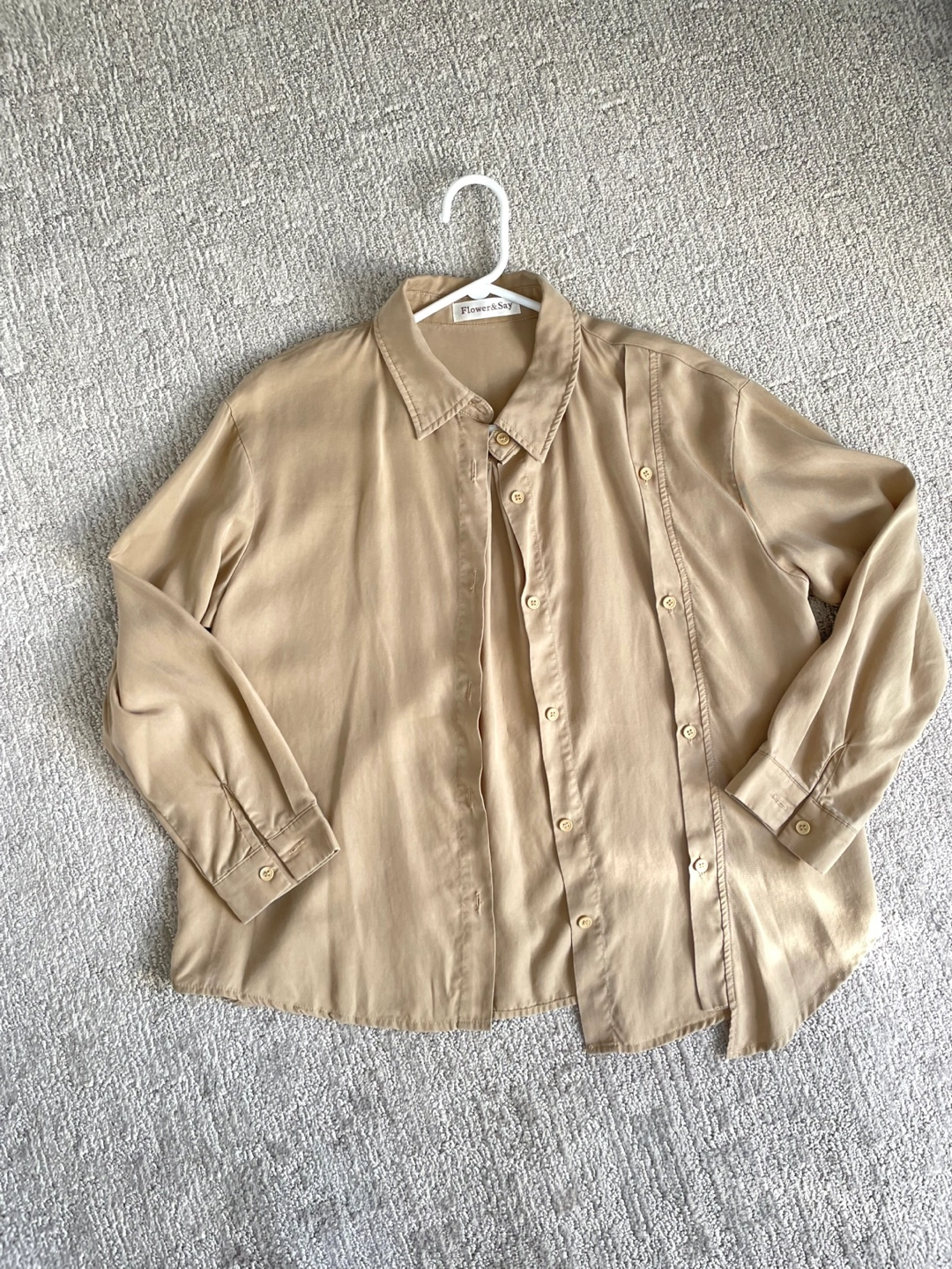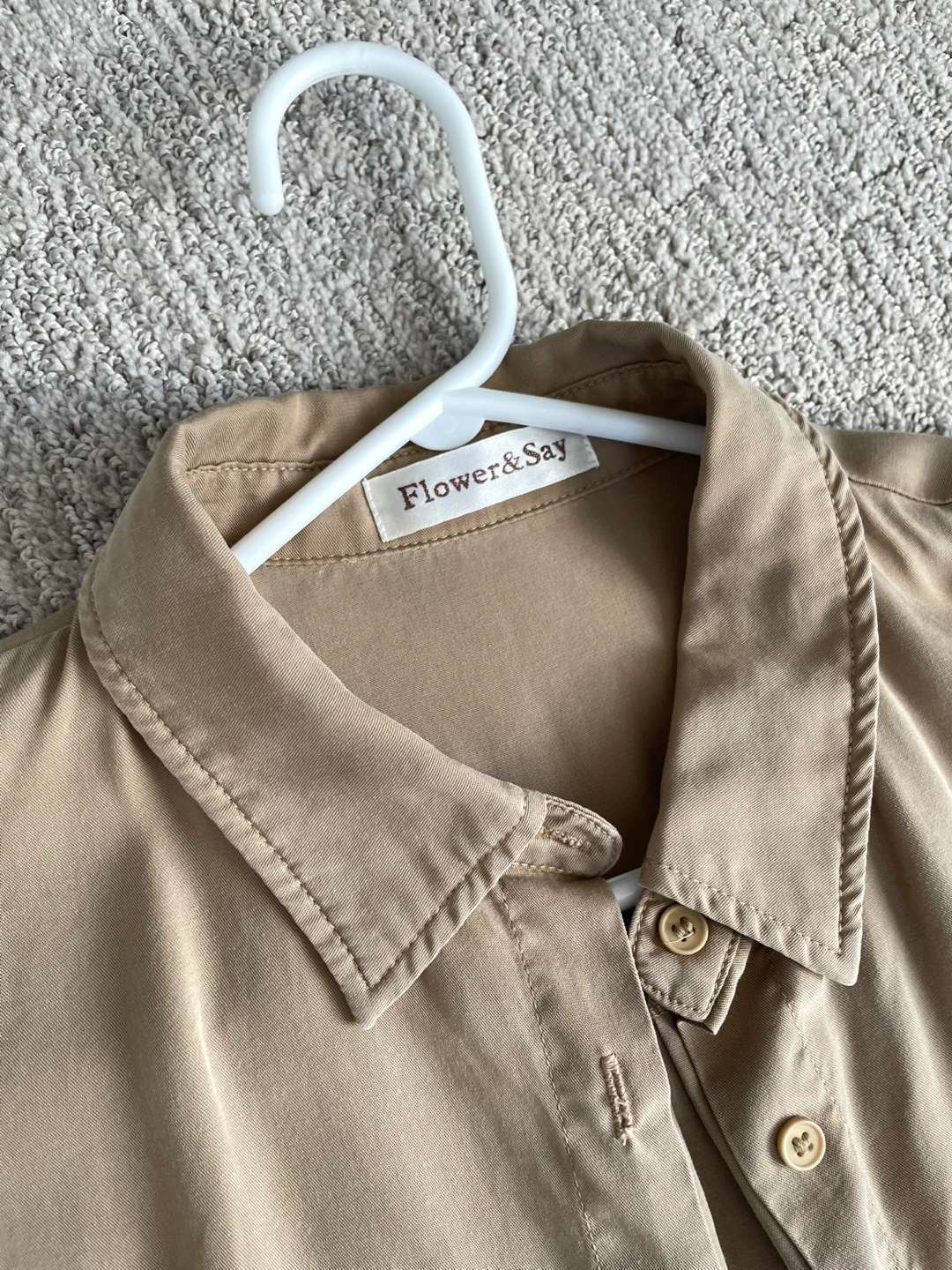 710Hamilton Here's a stylish beige button-down shirt from Flower & Say! It's in great condition and ready for a new home. The neutral colour makes it super versatile for different outfits and occasions. A classic piece to add to your wardrobe!