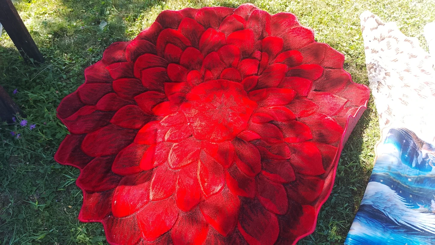 112Selling a beautiful Flowers brand rug in a vibrant red colour! It's a unique floral design that will add a pop of colour to any room. The rug is 5'2" x 5'2" in size.