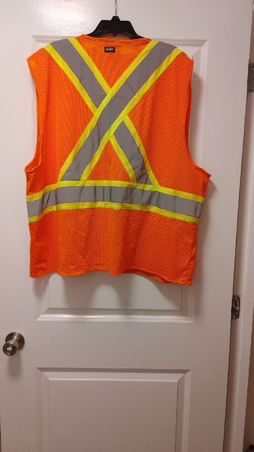 63Selling a fluorescent orange safety vest from Uline. It's size 2X/3X. Please see photos for condition!