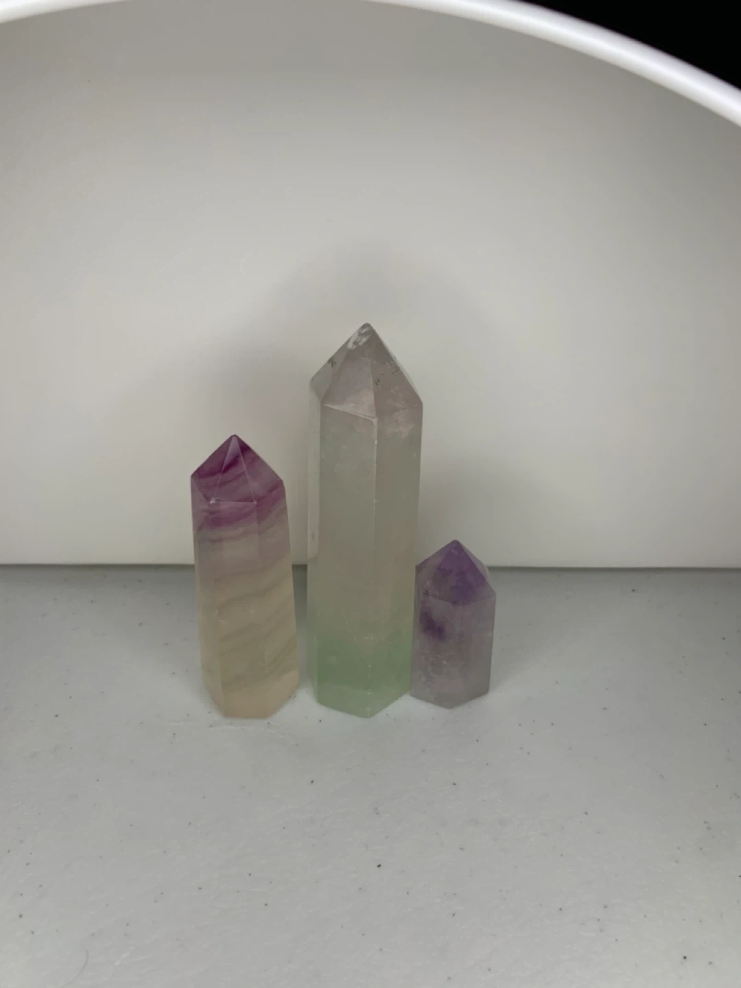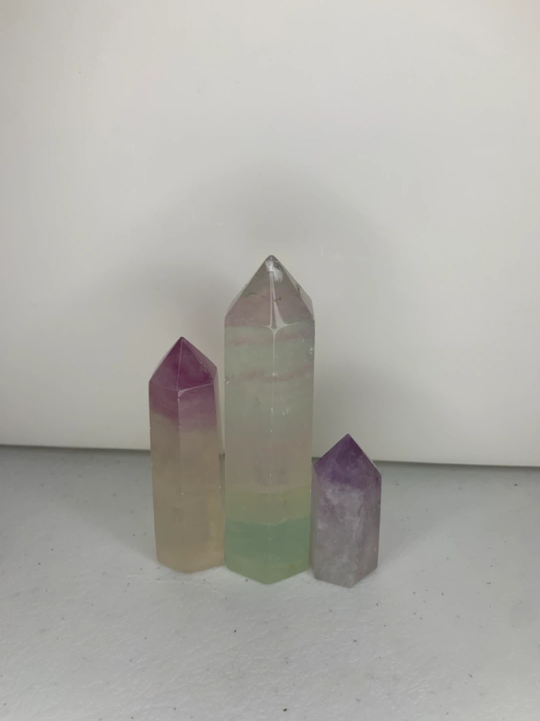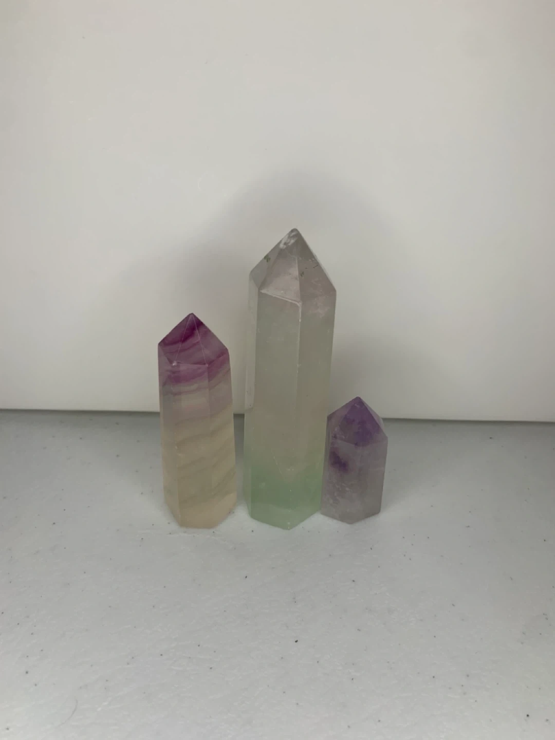 Selling a set of three fluorite crystal towers. They have beautiful colours and are in great condition. Perfect for adding some zen to your space