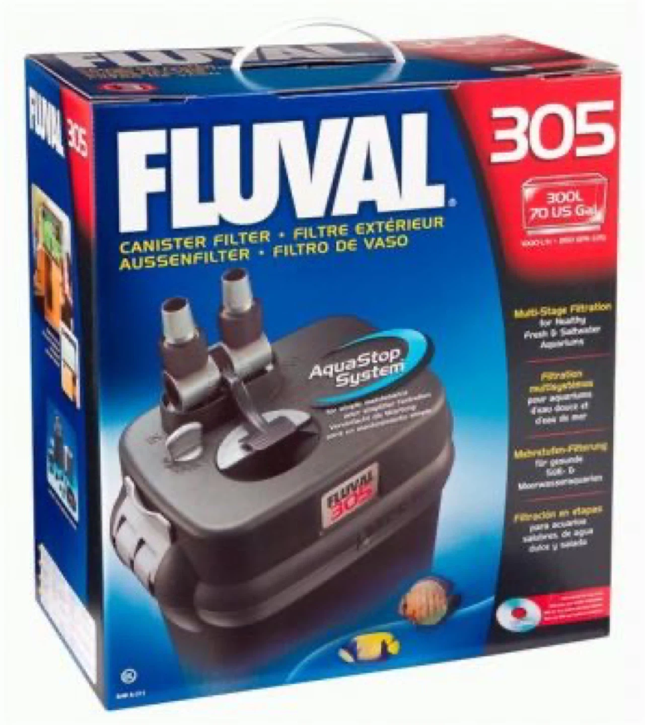 18Selling a used Fluval 305 canister filter! It's a multi-stage filtration system suitable for freshwater and saltwater aquariums. It's designed for tanks up to 70 US gallons (300L).
