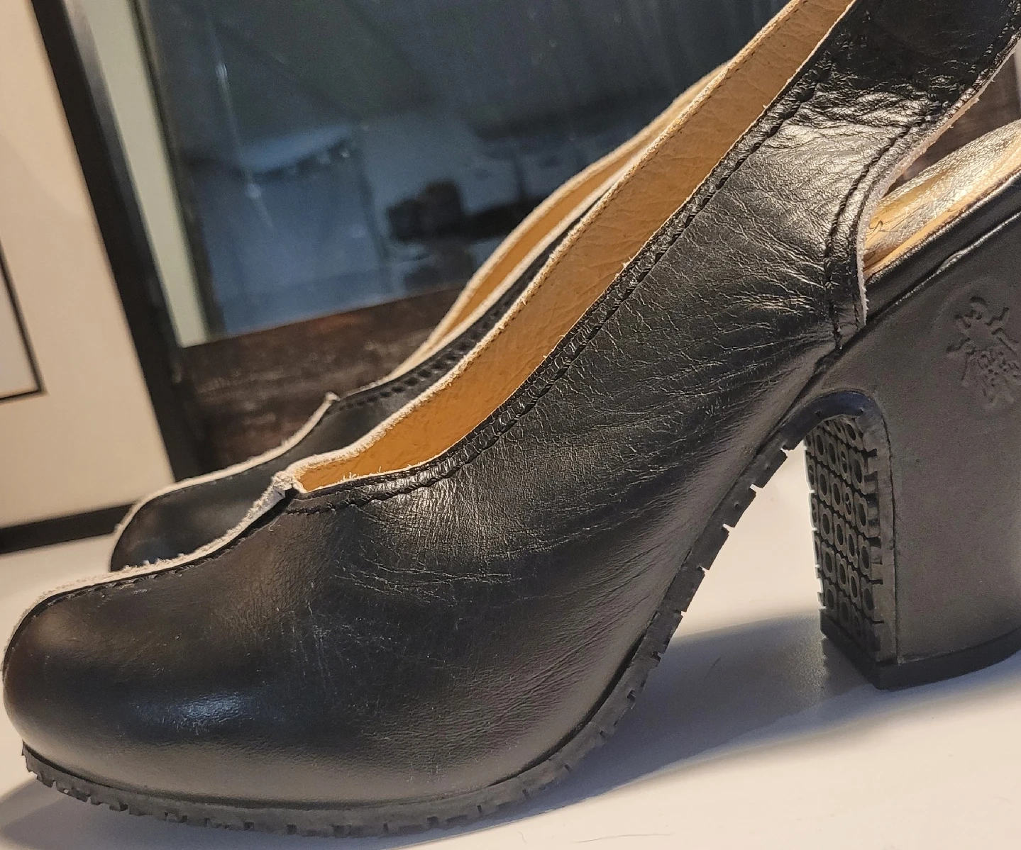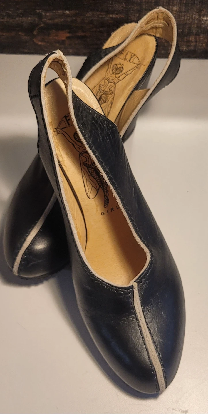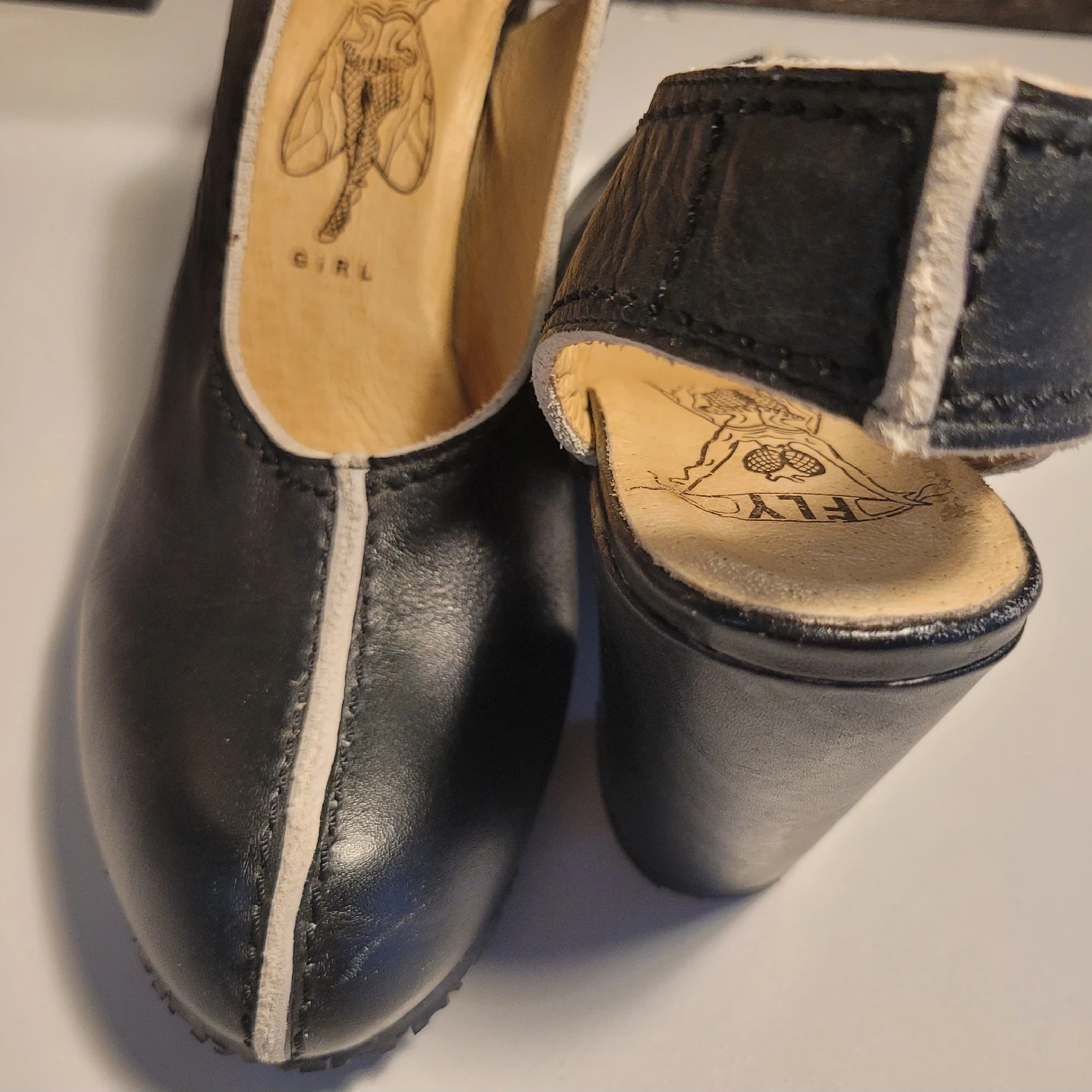 15Selling a pair of Fly London slingback heels in black leather! These stylish shoes are in great shape and are a women's size 40. They feature a comfortable heel and a unique design that's sure to turn heads. Perfect for dressing up or adding a bit of edge to a casual outfit