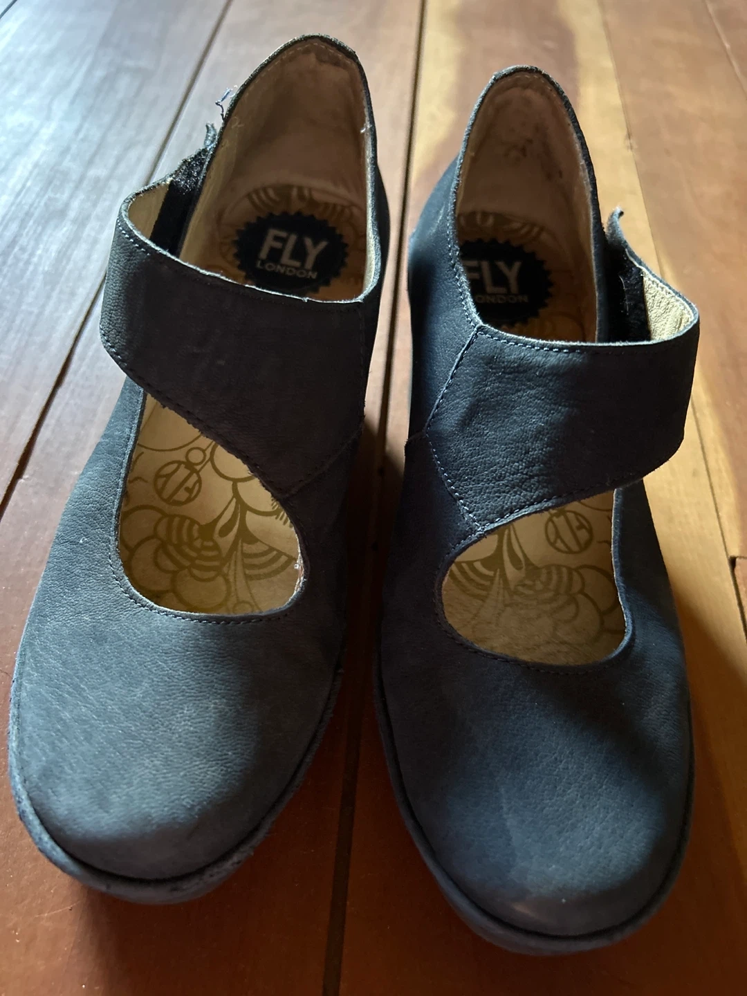 Fly London Mary Jane style gently used shoes, featuring a velcro strap. Perfect for adding a touch of style to any outfit!