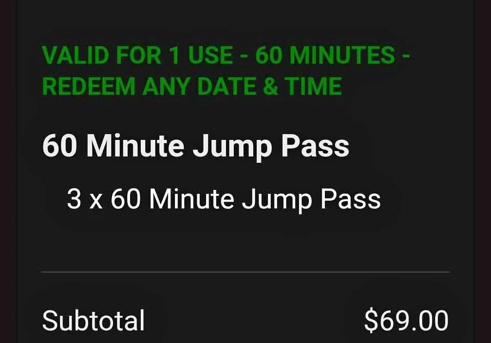 107Open to offers on trampoline park tickets for any day/time. 3 passes, 60 minutes jump passes for Flying Squirrel. I bought them but haven't found anyone to go with me and I also cannot go as I'm pregnant. Open to offers as I know especially people with kids would love them and just want them off my hands and get a bit of my money back.