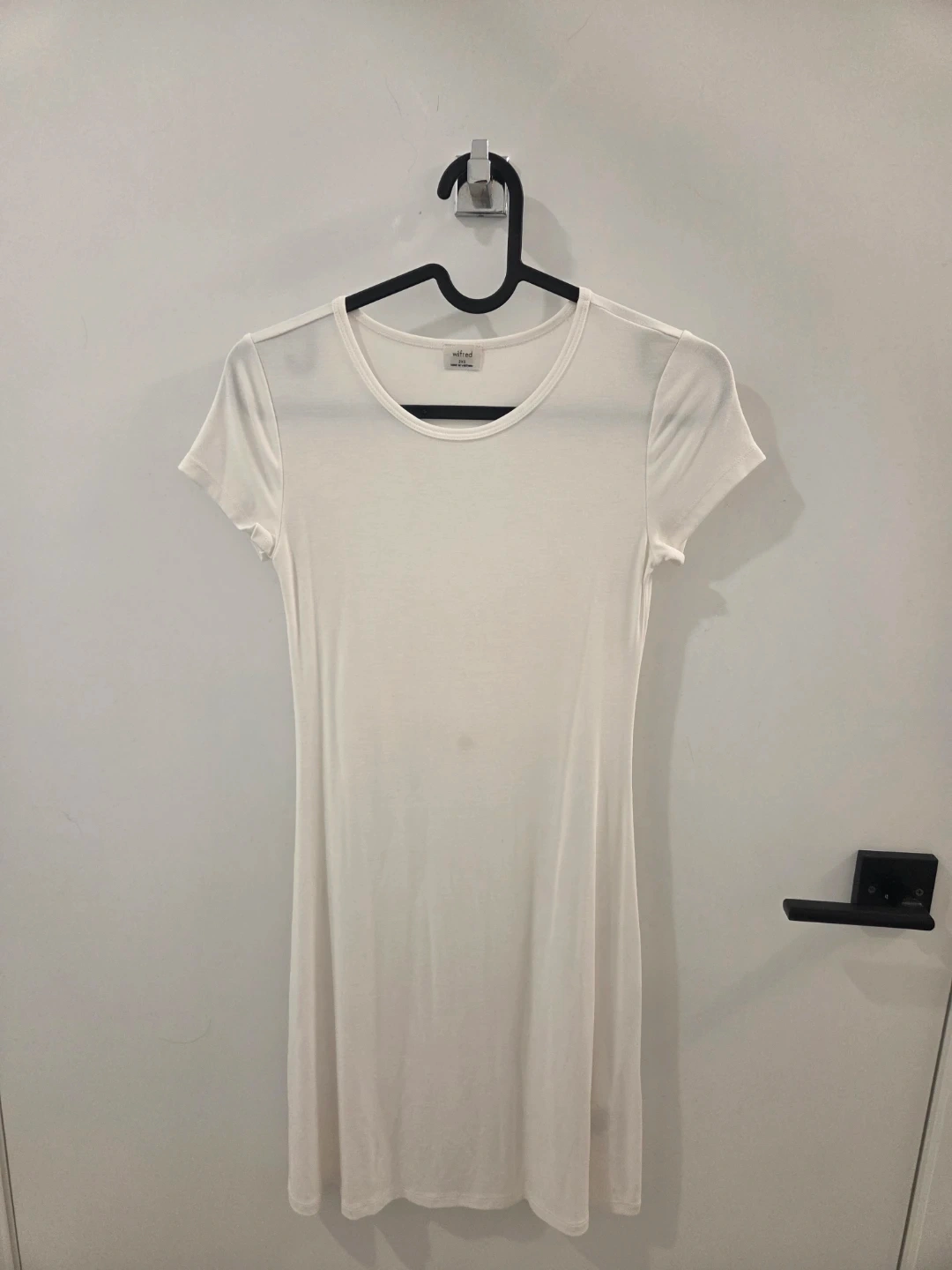 Selling my Wilfred mini dress in a beautiful crisp white. The fabric is incredibly soft and stretchy, making it super comfortable for all-day wear. It has a flattering, slim fit that looks great on its own or layered with a jacket.