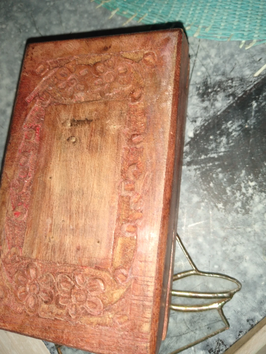 Small three and a half by 5 1/2 hand carved wooden trinket box