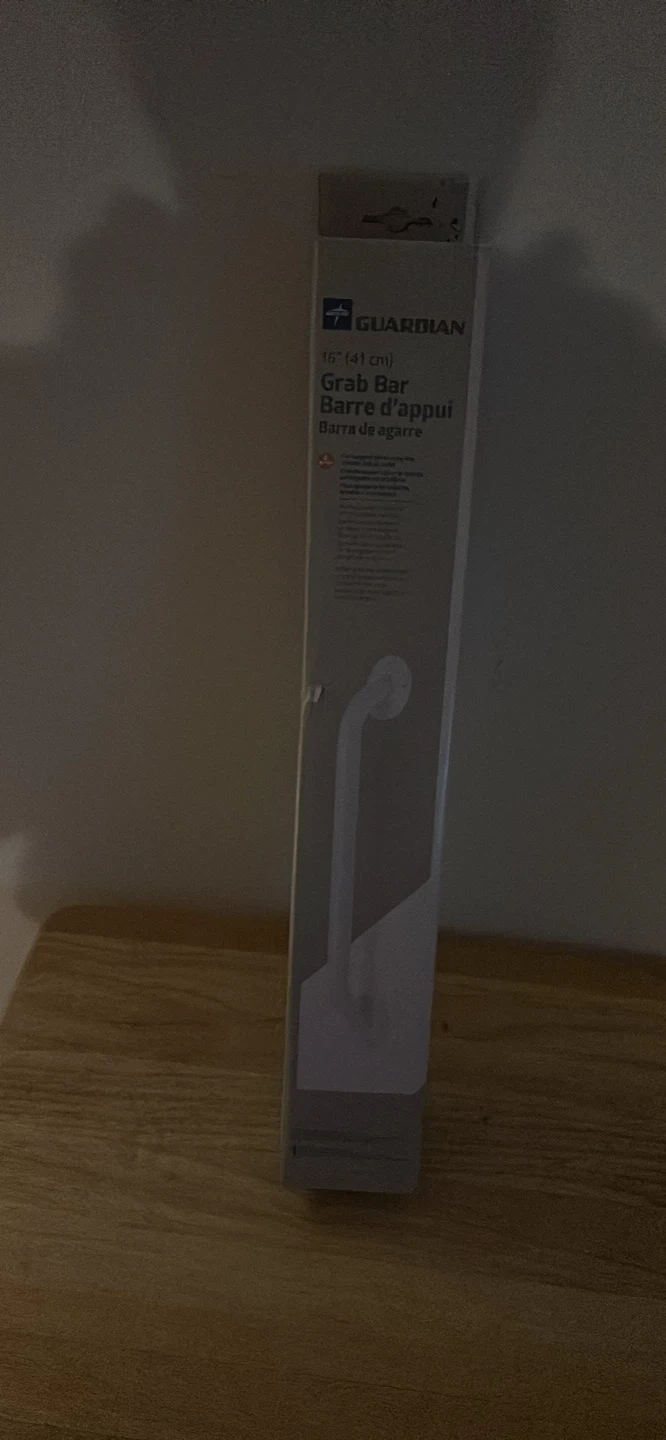 This is a Guardian 16 inch grab bar. It's white and comes in its original packaging. Useful for adding stability in bathrooms.