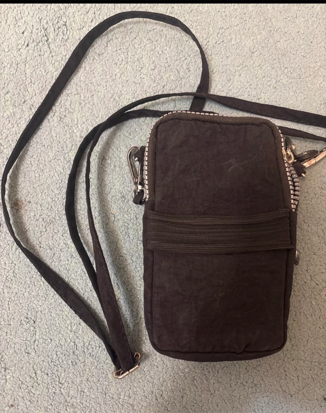 This Bao Bao Hu crossbody bag is black and a small size, perfect for carrying essentials. Comes with de-attachable strap and arm strap perfect for storing your phone when running!