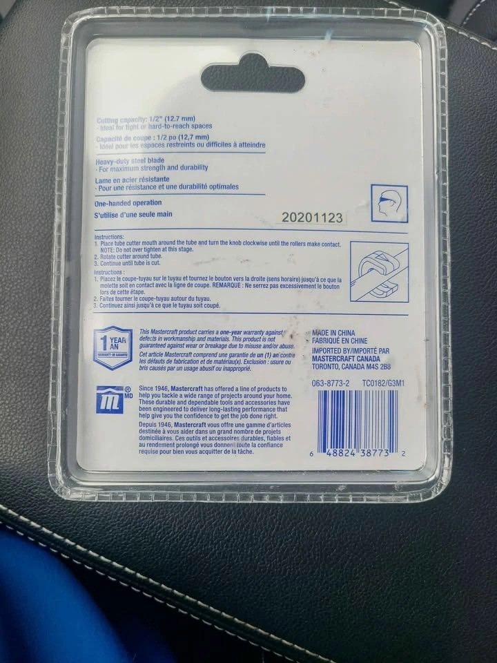 Buy & SellMastercraft C-Type Tube Cutter 1/2"Mastercraft C-Type Tube Cutter 1/2"$15Brand new, still in the original box. I couldn't return it as I seem to have misplaced the receipt.WHERE TO MEETCheck LocationView MapSELLERCarlosMarkham Cathedral50 reviews0 chats·0 favorites·0 viewsSEND CHAT TO SELLERHi Carlos! I’m interested in your listing.Hi Carlos! I’m interested in your listing.Get the Karrot app to chatSign In to chat