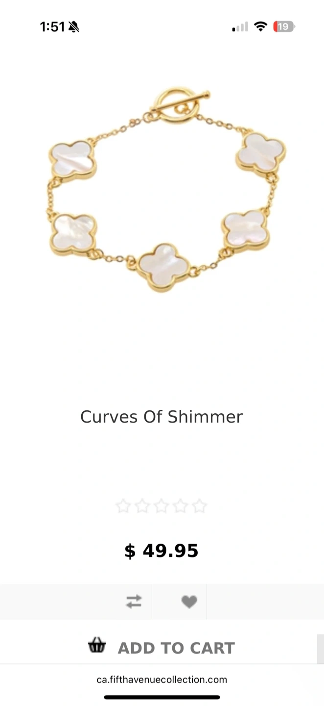 Selling a beautiful Fifth Avenue Collection bracelet called Curves of Shimmer. It's 7.5" long and features a lovely design. Originally priced at $49.95+hst. Get for $50 flat. Pictures do not do justice for how beautiful this piece of jewelry is!! High quality and nickel-free. Want more jewelry, pm me!