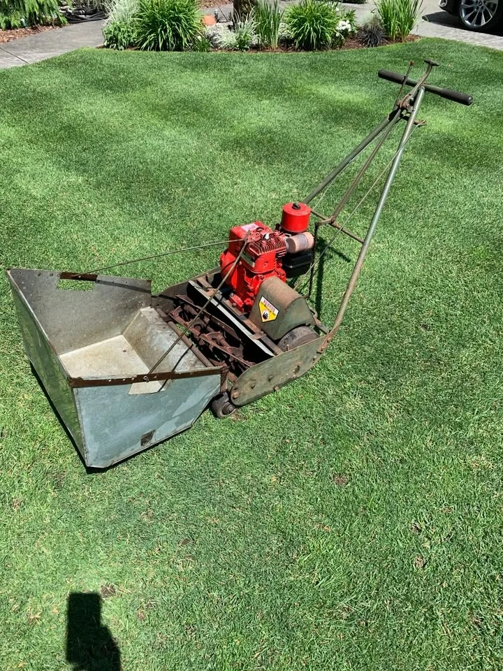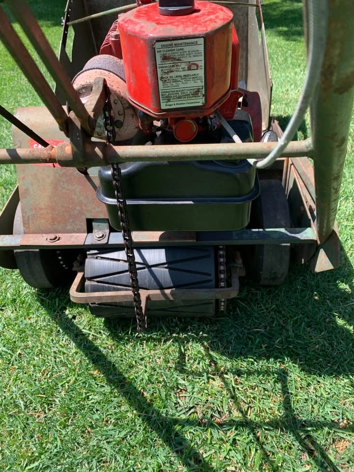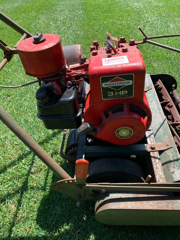 Well maintained: 5 blade and bedknife sharpened, bedknife replaced 2ish years ago with a new, removable one, recently serviced and backlapped. Runs great and cuts clean! Easy height adjustment and simple to use.