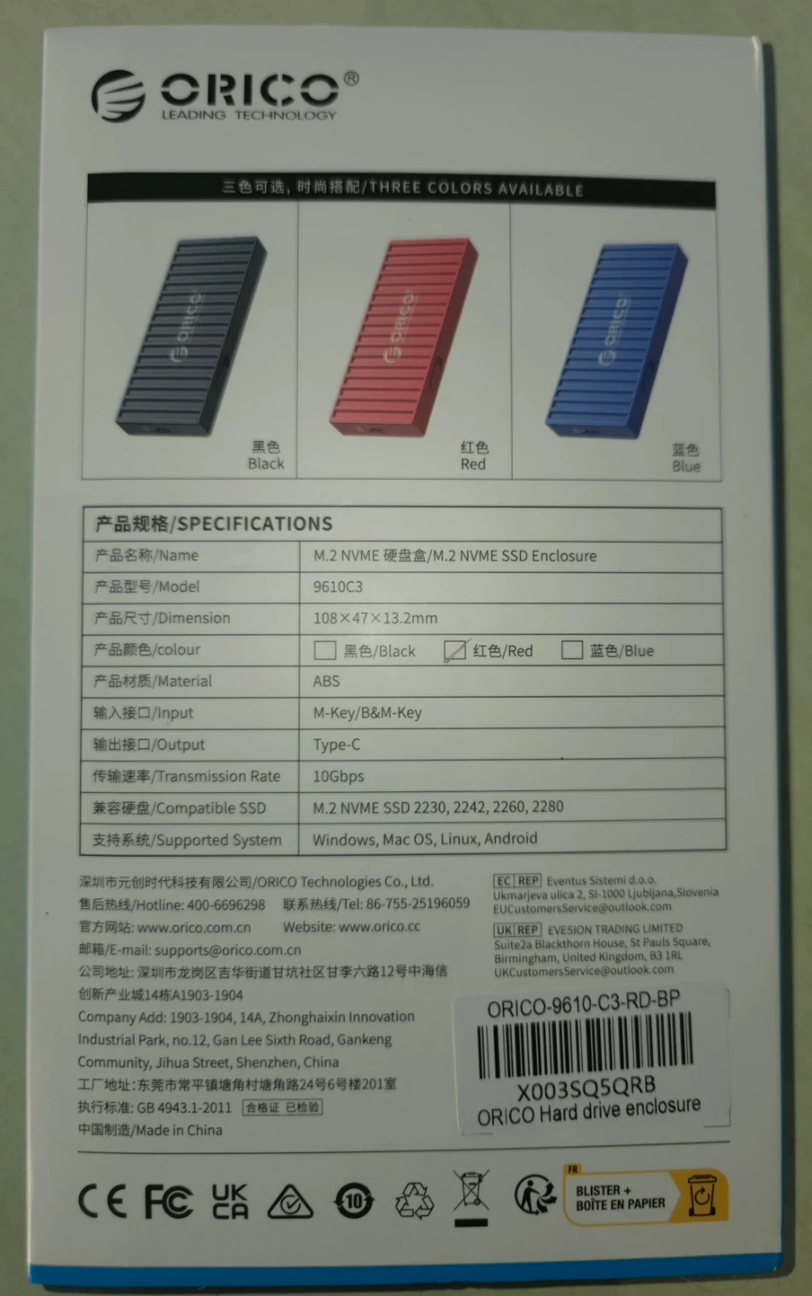 Brand new ORICO M.2 SSD enclosures. Supports NVMe SSDs. Supports all major SSD sizes (2230, 2242, 2260, 2280) and both M-Key and B&M-Key SSDs. It has a tool-free design.