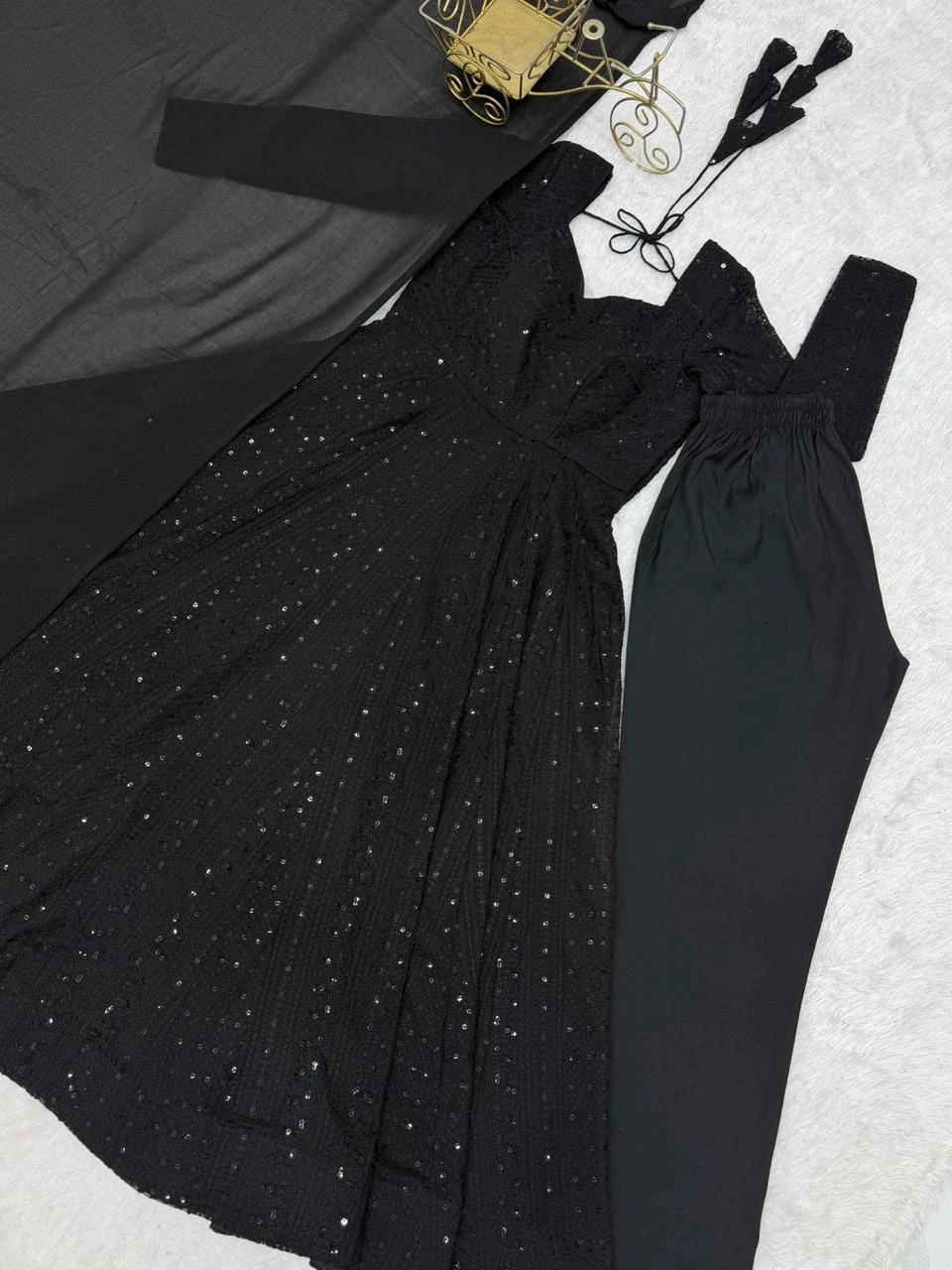 Black Sequin Anarkali Suit with Dupatta and Pants