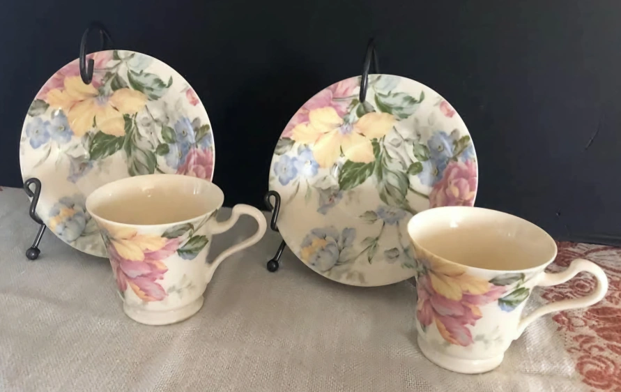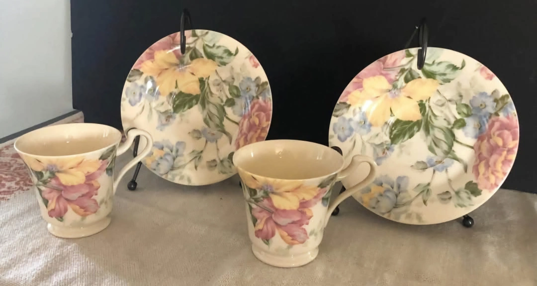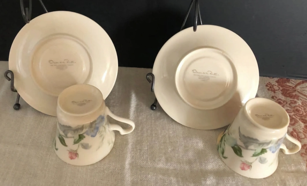 Oscar de la Renta "English Tapestry" Teacups and Saucers Set Of 2