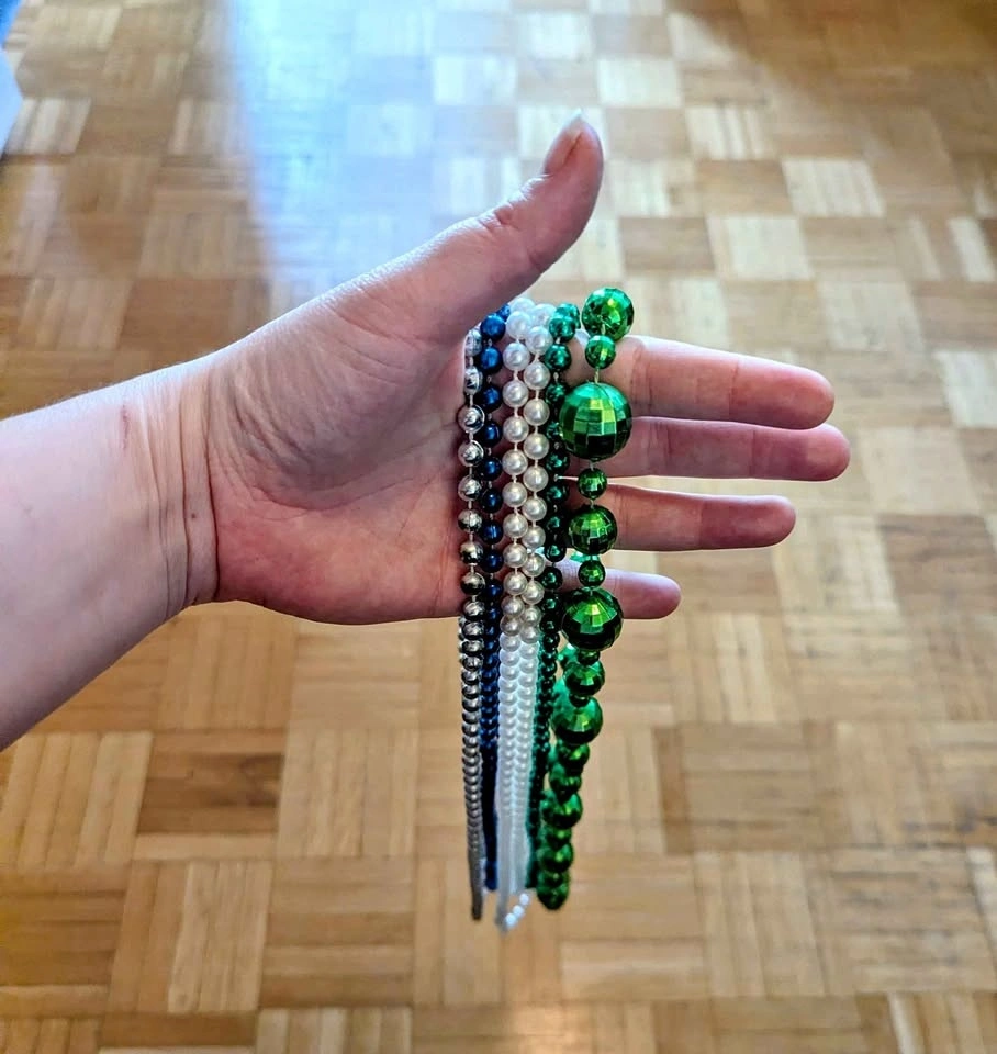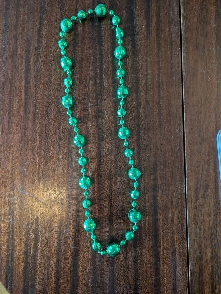 Selling a lot of five festive beaded necklaces, perfect for Mardi Gras, St. Patrick's Day, or any party!