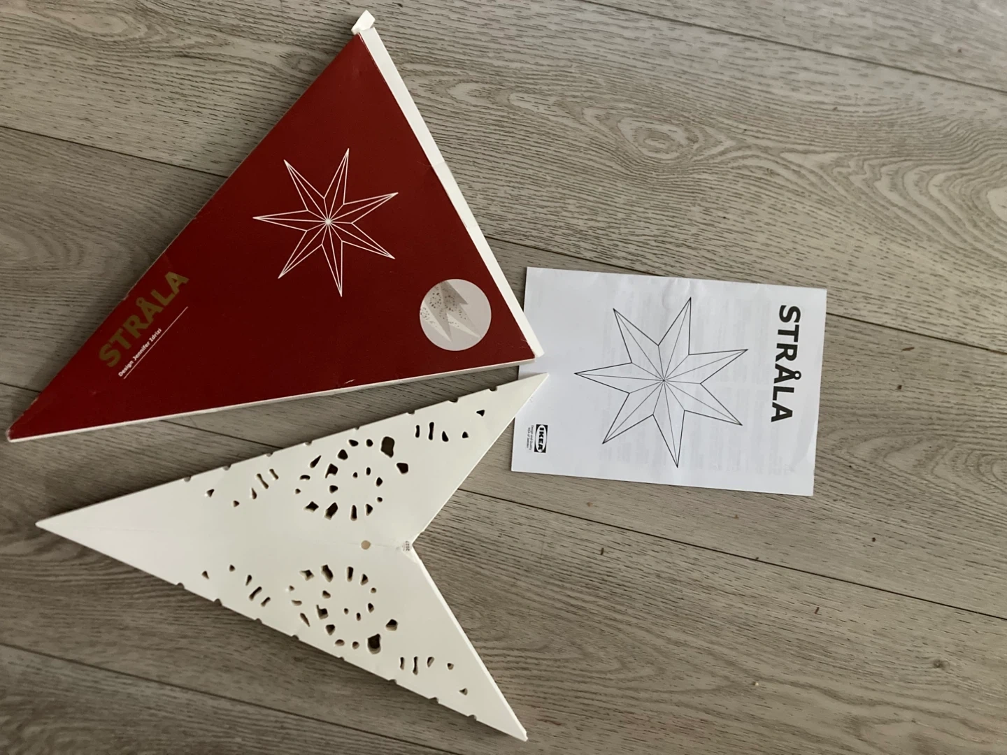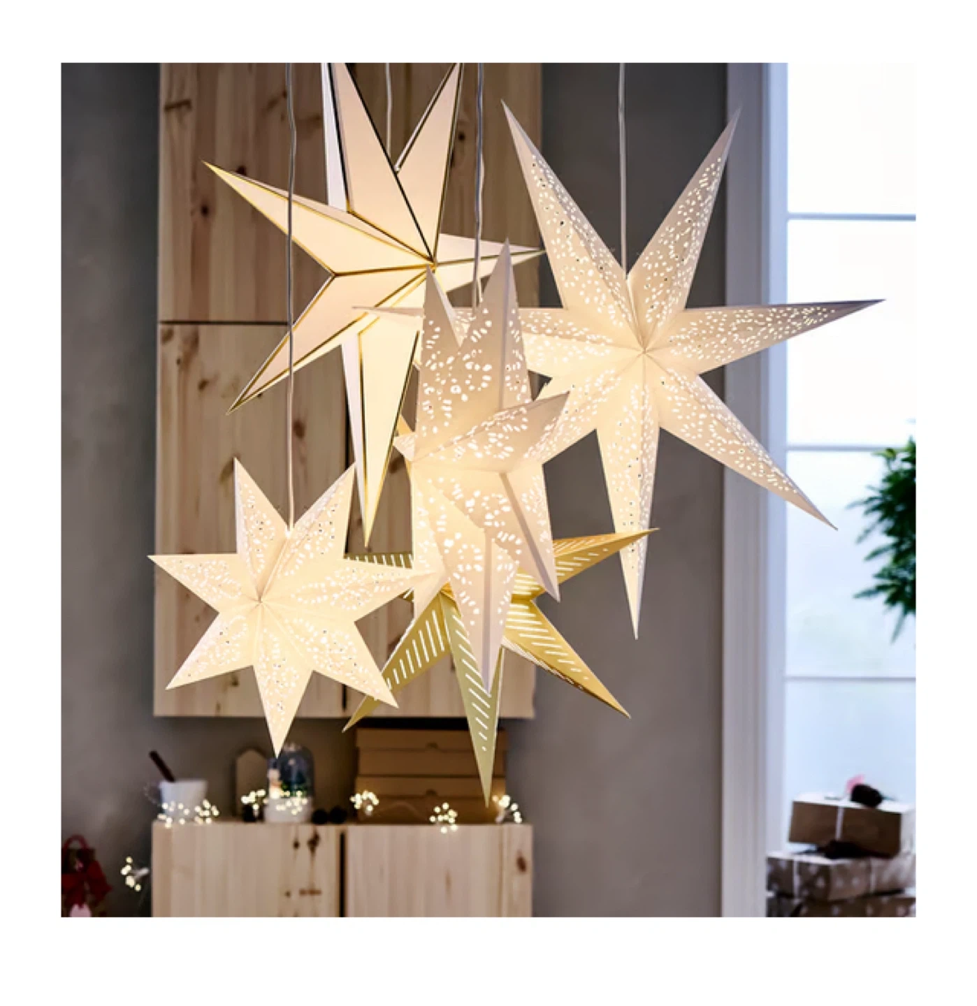This white paper star lantern is designed by Jennifer Idrizi for IKEA's STRÅLA collection. It's 70 cm (28 inches) in diameter and includes the necessary assembly parts and instructions. A great decorative piece for holiday or everyday ambiance!