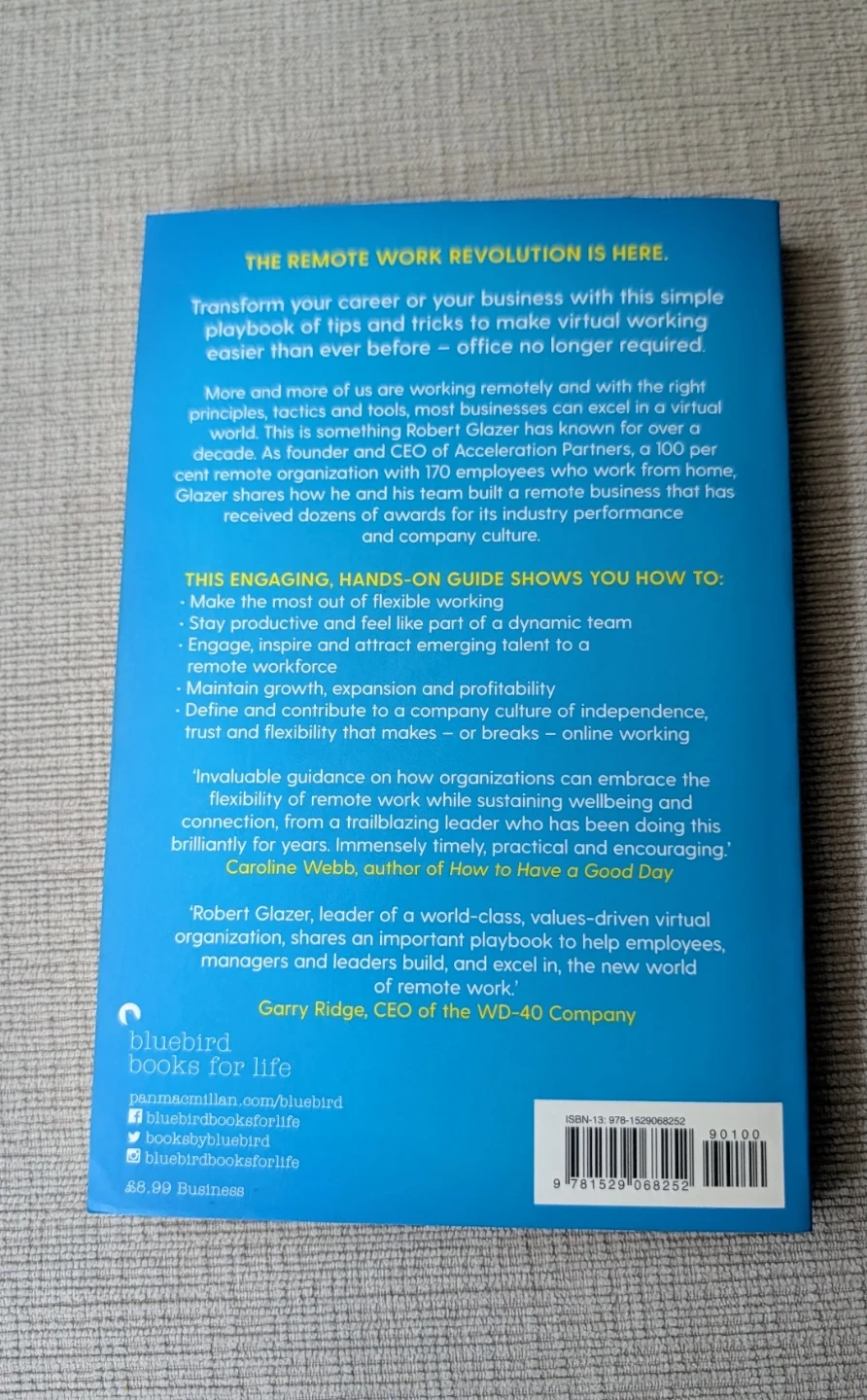 This book offers simple and effective tips for successful, productive, and empowered remote work. It's written by Robert Glazer with Mick Sloan. It provides guidance on how organizations can embrace the flexibility of remote work while sustaining wellbeing and connection. This engaging, hands-on guide shows you how to make the most out of flexible working and stay productive.