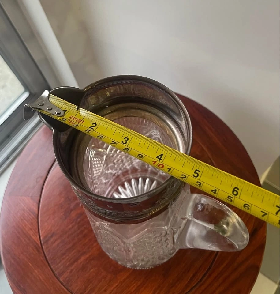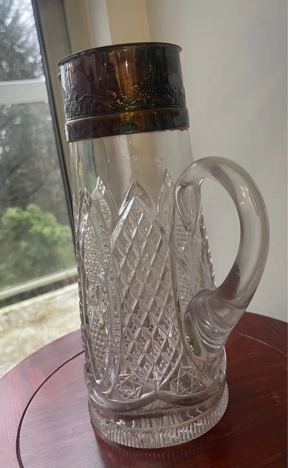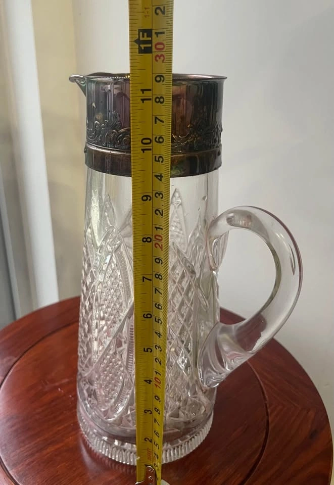 Vintage Cut Glass Pitcher silver plated Metal Top