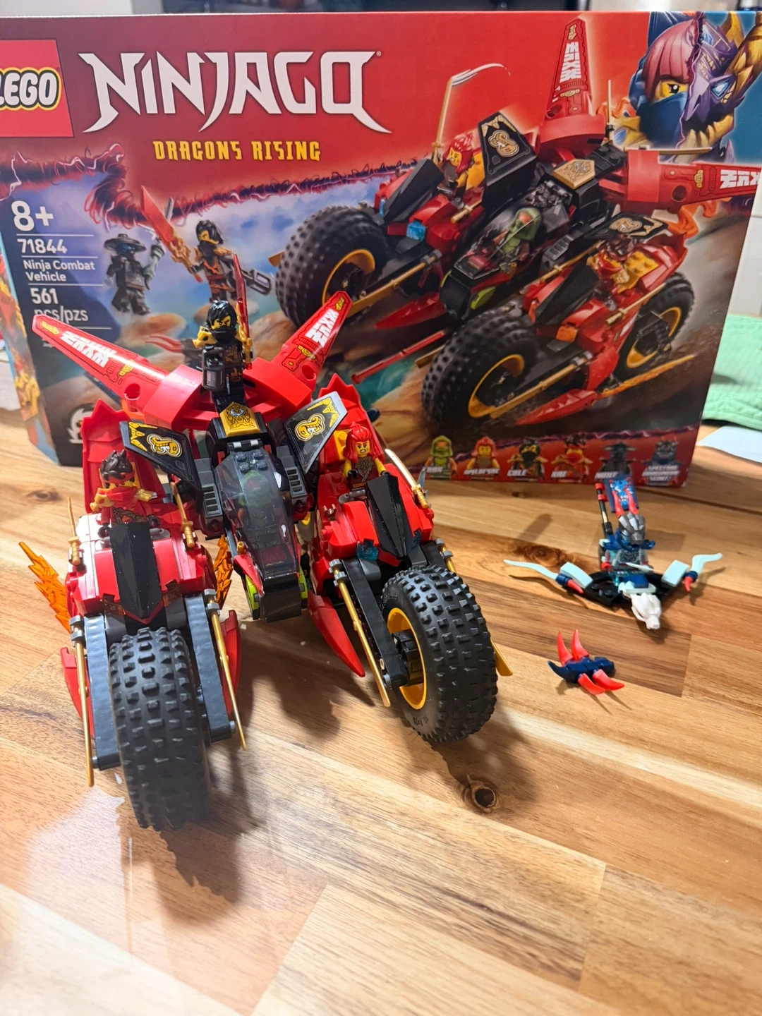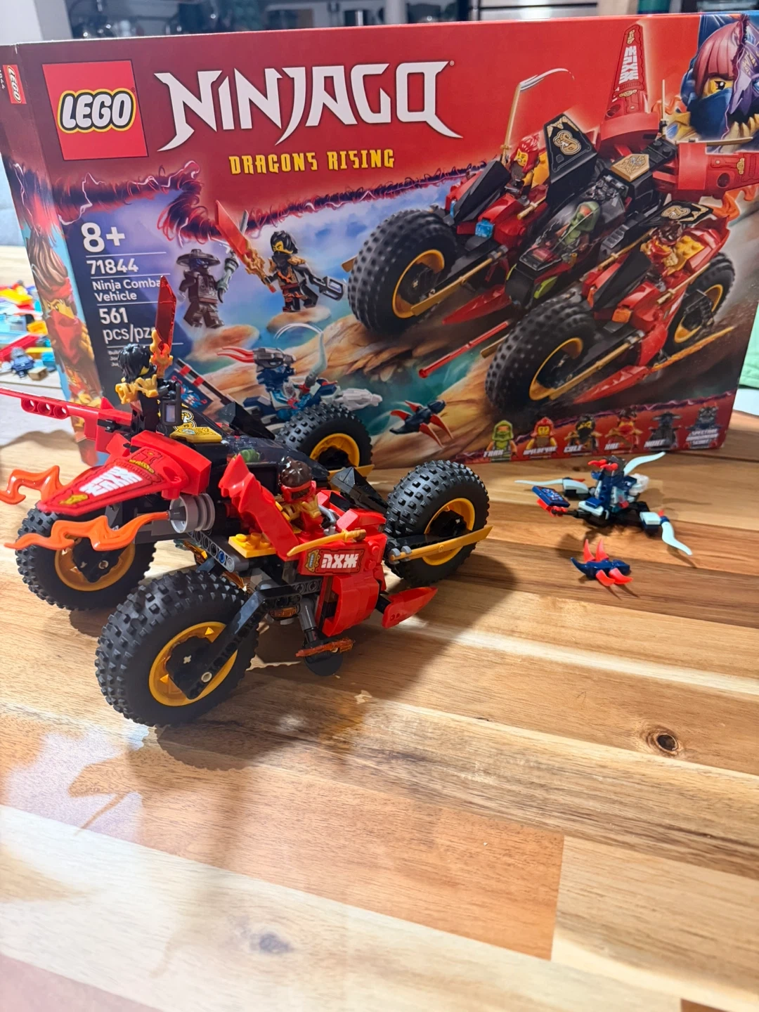 This is the LEGO Ninjago Dragons Rising Ninja Combat Vehicle set 71844. It includes 561 pieces and features characters from the show. It's great for kids aged 8 and up who love building and action play!