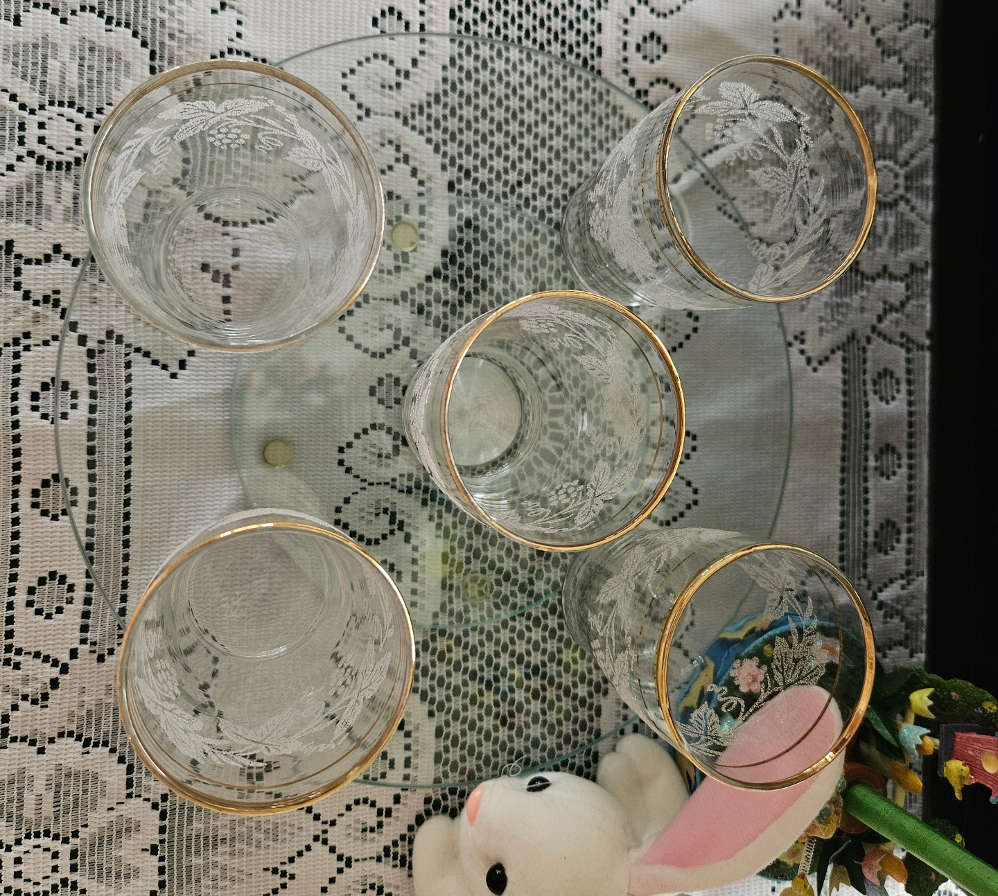 Material: Made of clear glass with a gold rim.