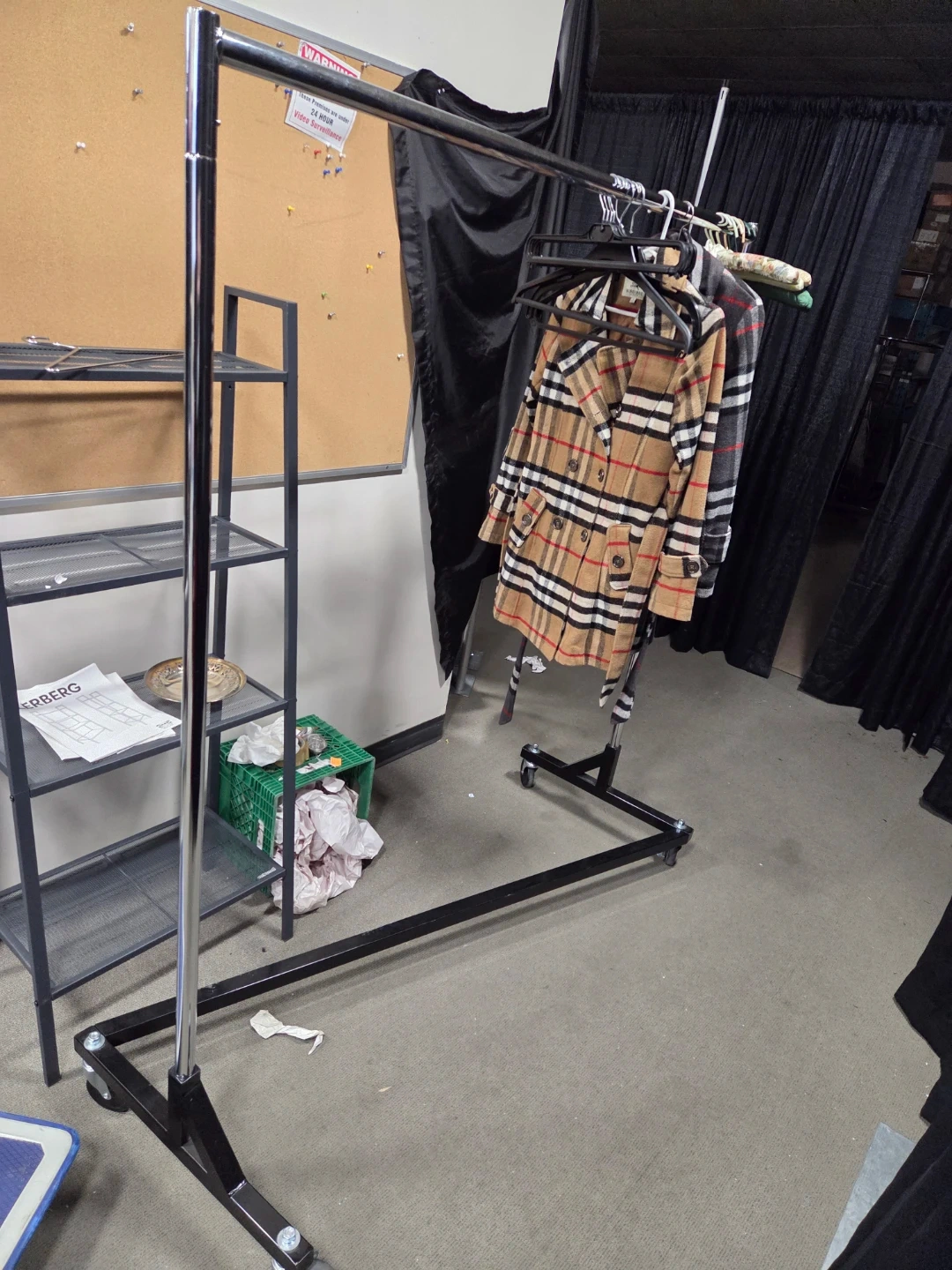Good rolling rack for home or retail store storefront. Wheels work well, looks in excellent near new condition.