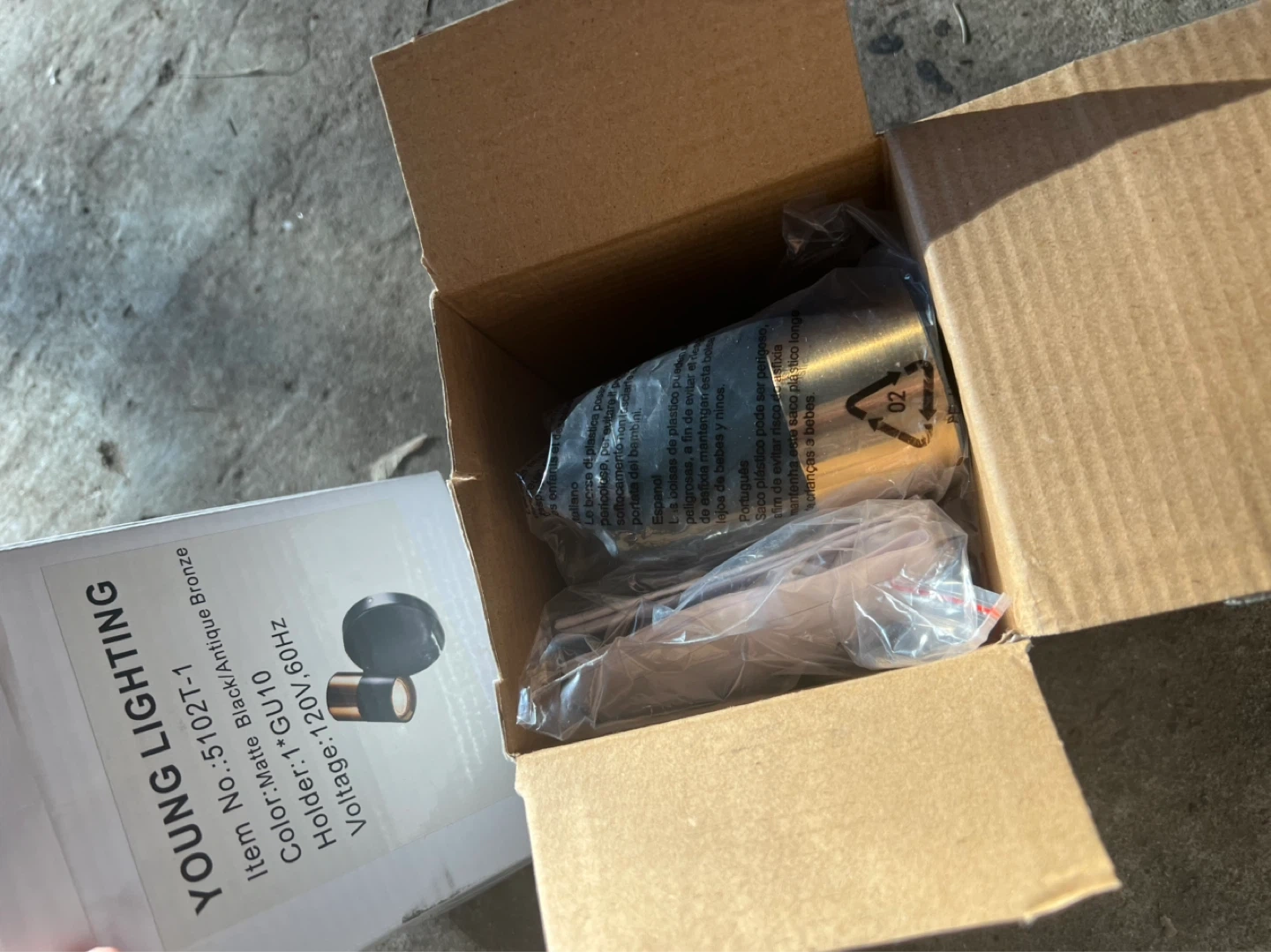 Brand new Young Lighting 5102T-1 spot light. It's a matte black and antique bronze finish. Holder is 1*GU10 and voltage is 120V, 60Hz. Perfect for accent lighting in any room!