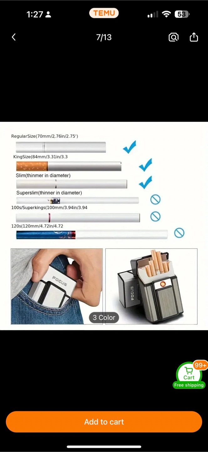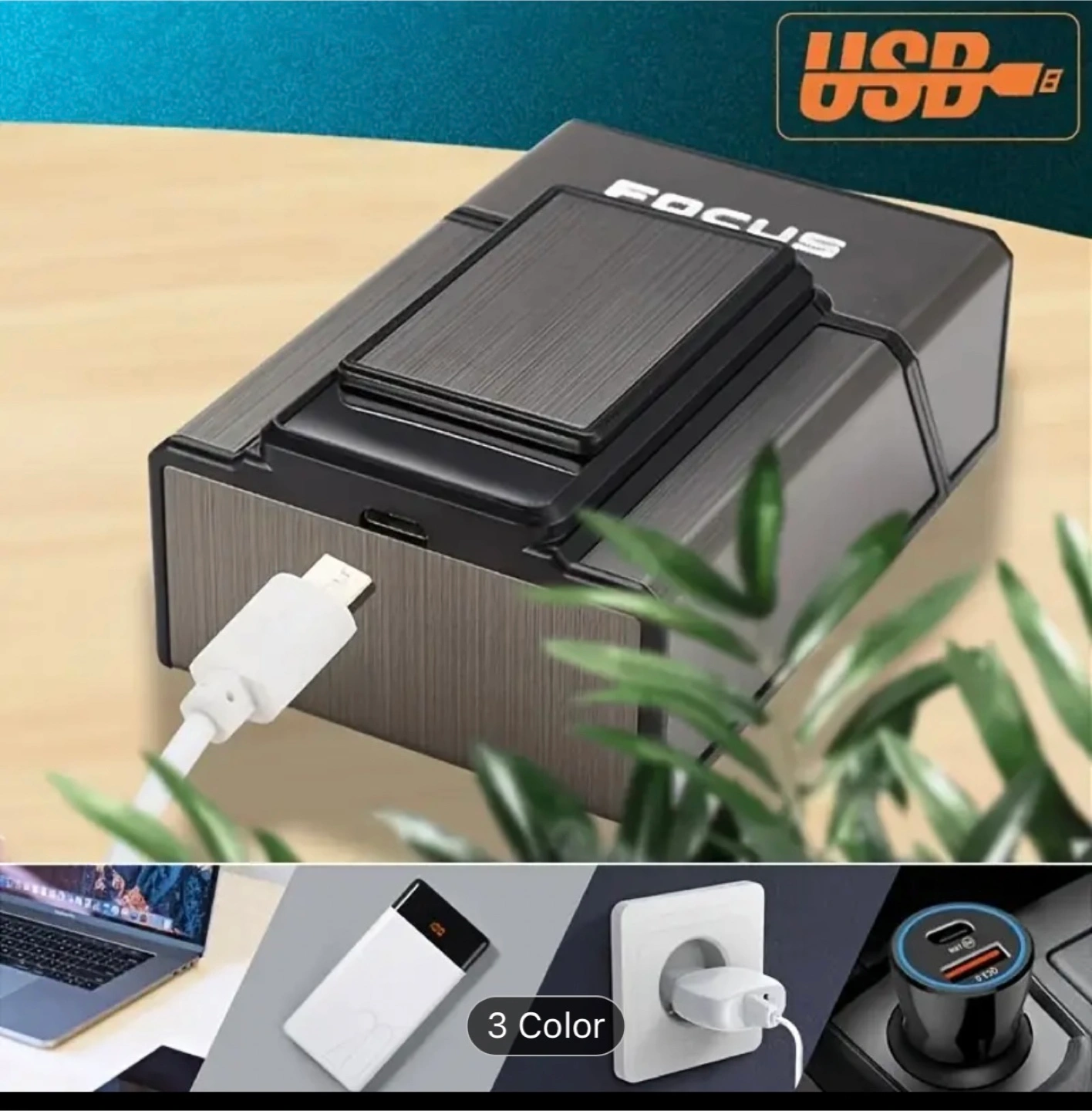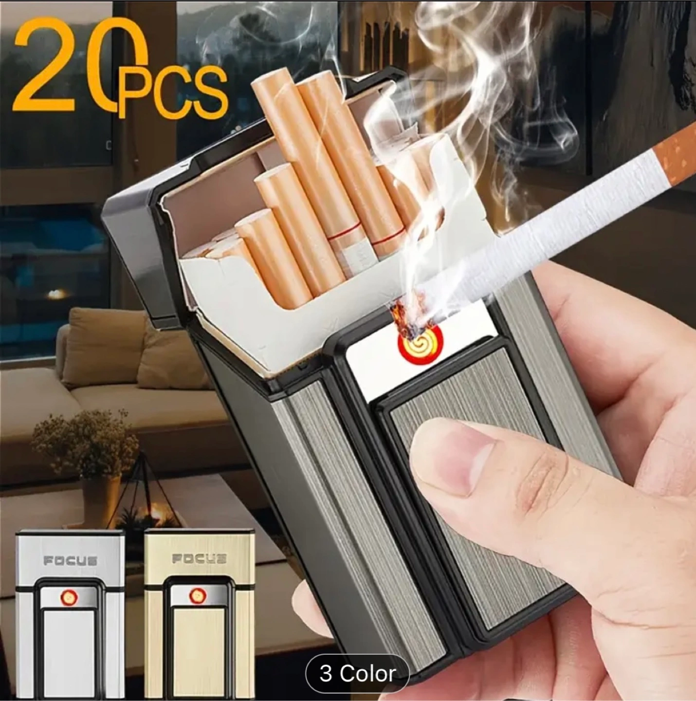 Upgrade your smoking experience with this sleek and convenient cigarette case with a built-in lighter! Available in three sophisticated colors—Gold, Silver, and Black—this case is both a practical and stylish accessory for smokers. It’s the perfect gift for anyone who smokes or anyone looking for a cool, convenient item! Features: Built-in Lighter: No more need for separate lighters! This cigarette case features an integrated, easy-to-use lighter that lights up with the press of a button. USB Rechargeable: Charge the lighter via the USB port—simply plug it into any USB charger to keep it powered up and ready to go. Compact & Stylish: Sleek and durable, the case fits 20 cigarettes and keeps them safe and secure. Plus, the modern design ensures you look great when using it! 3 Colors Available: Choose from Gold, Silver, and Black to match your style. Perfect Gift: Ideal for birthdays, holidays, or a thoughtful gift for any smoker in your life. Why You'll Love It: Convenience: The built-in USB rechargeable lighter means you’ll never have to worry about running out of matches or disposable lighters. Stylish Design: With a sleek finish and high-quality build, it’s a statement piece that’s also practical. Ready for Gifting: Whether you’re treating yourself or giving a gift, this cigarette case is sure to impress.