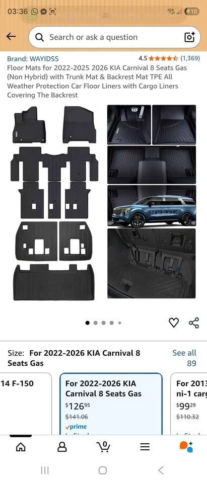 Brand new, never used floor mats for an 8-seat Kia Carnival (Gas / Non-Hybrid). This is a full set including a cargo trunk mat and backrest seat protector mats. Made from durable TPE all-weather material, they are waterproof and offer protection from mud, snow, and dirt. Custom fit for 2022β2026 Kia Carnival models. They have an anti-slip backing and are easy to remove and clean. Selling for $75. Pickup is at Winston Churchill & Britannia in Mississauga. Cash preferred.