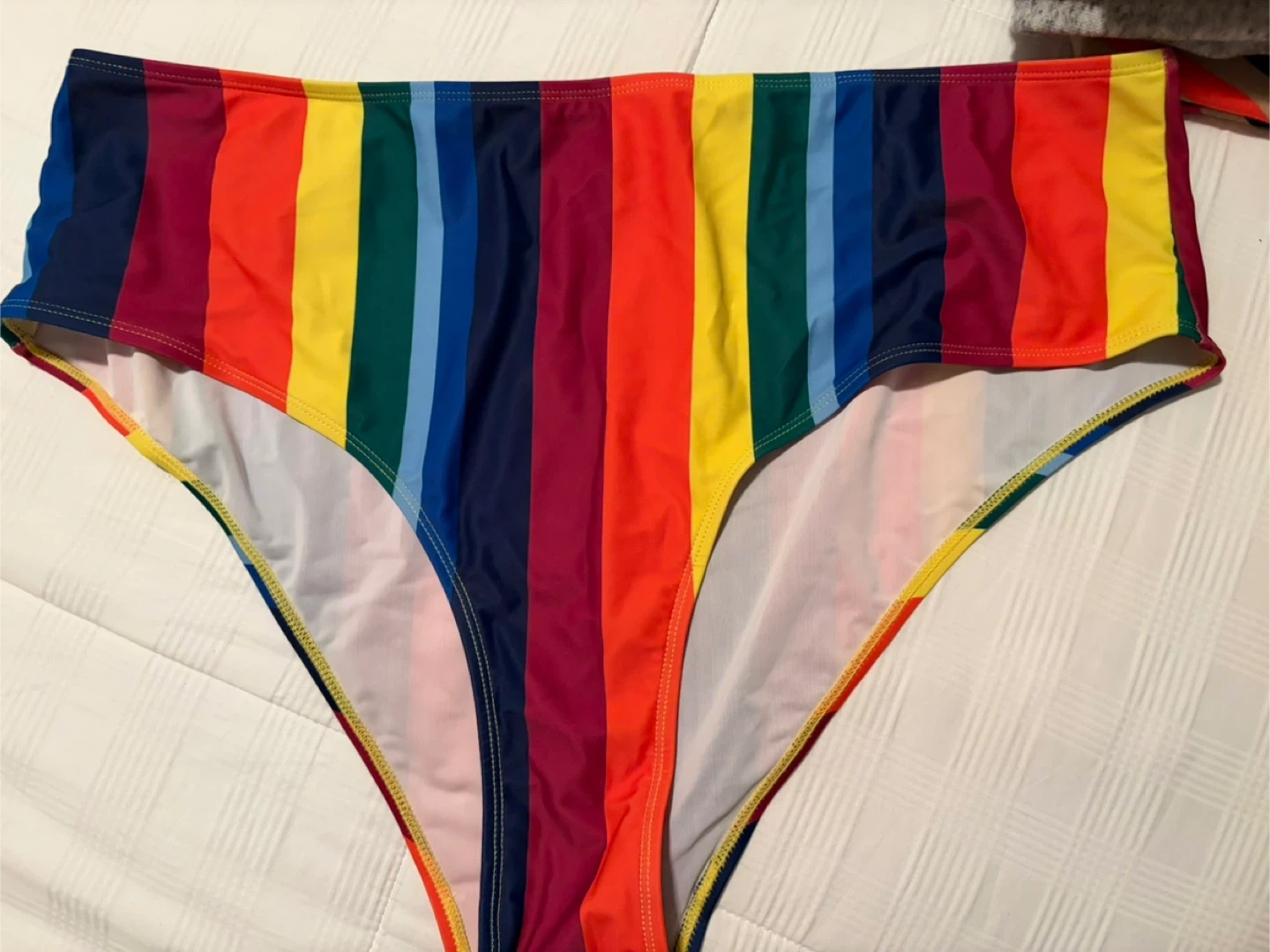 Rainbow colours high waist bikini bottom also available in 2 XL.