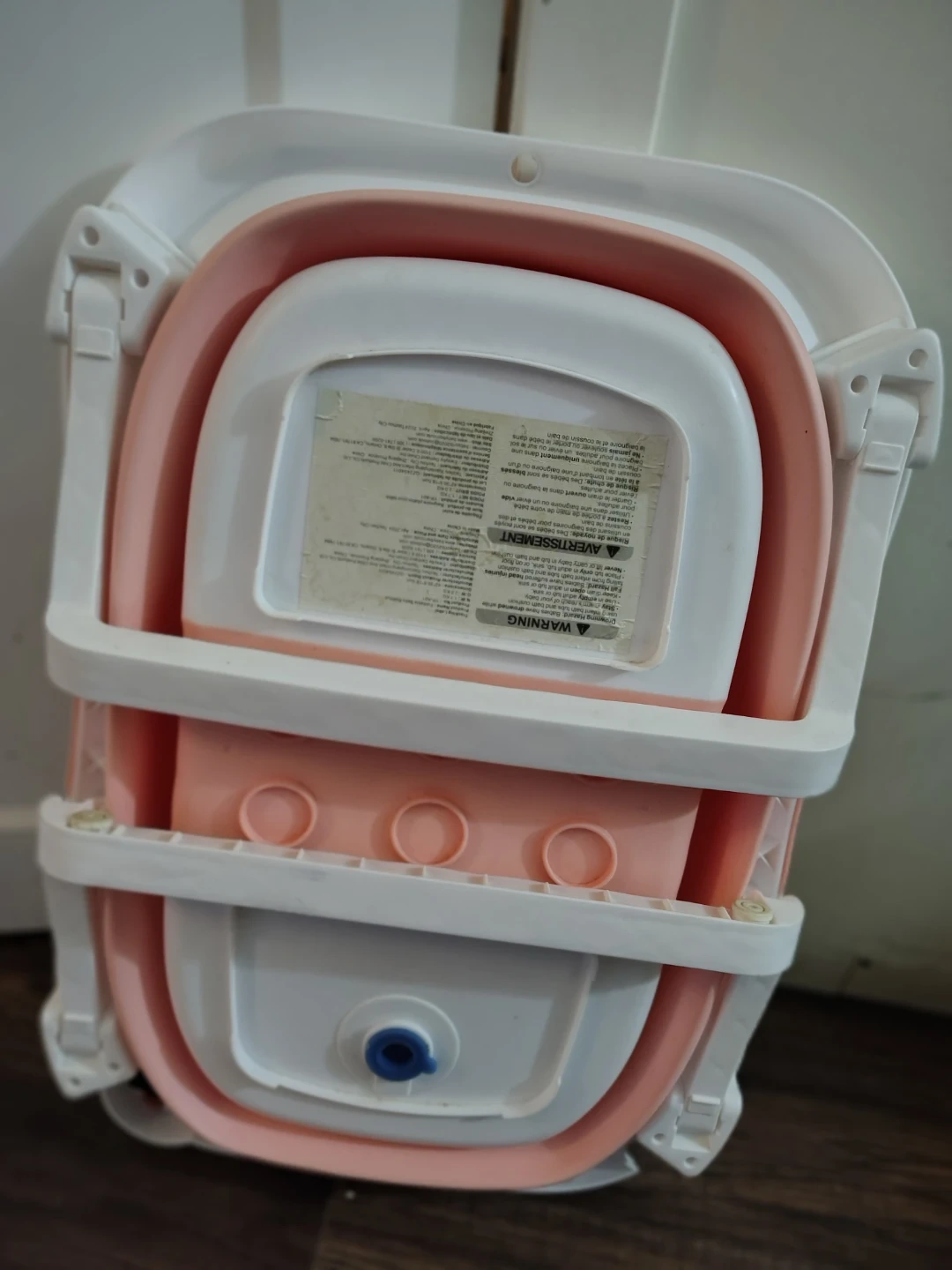 60Selling a foldable baby bathtub in great condition! It's white and pink, and it comes with a built-in thermometer to ensure the water is just right for your little one Perfect for saving space and easy storage when not in use