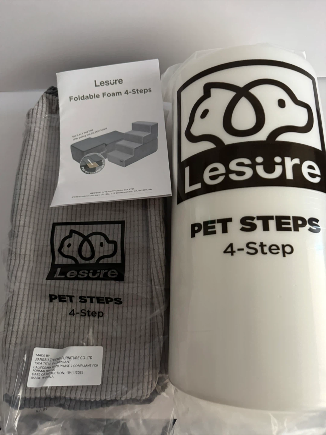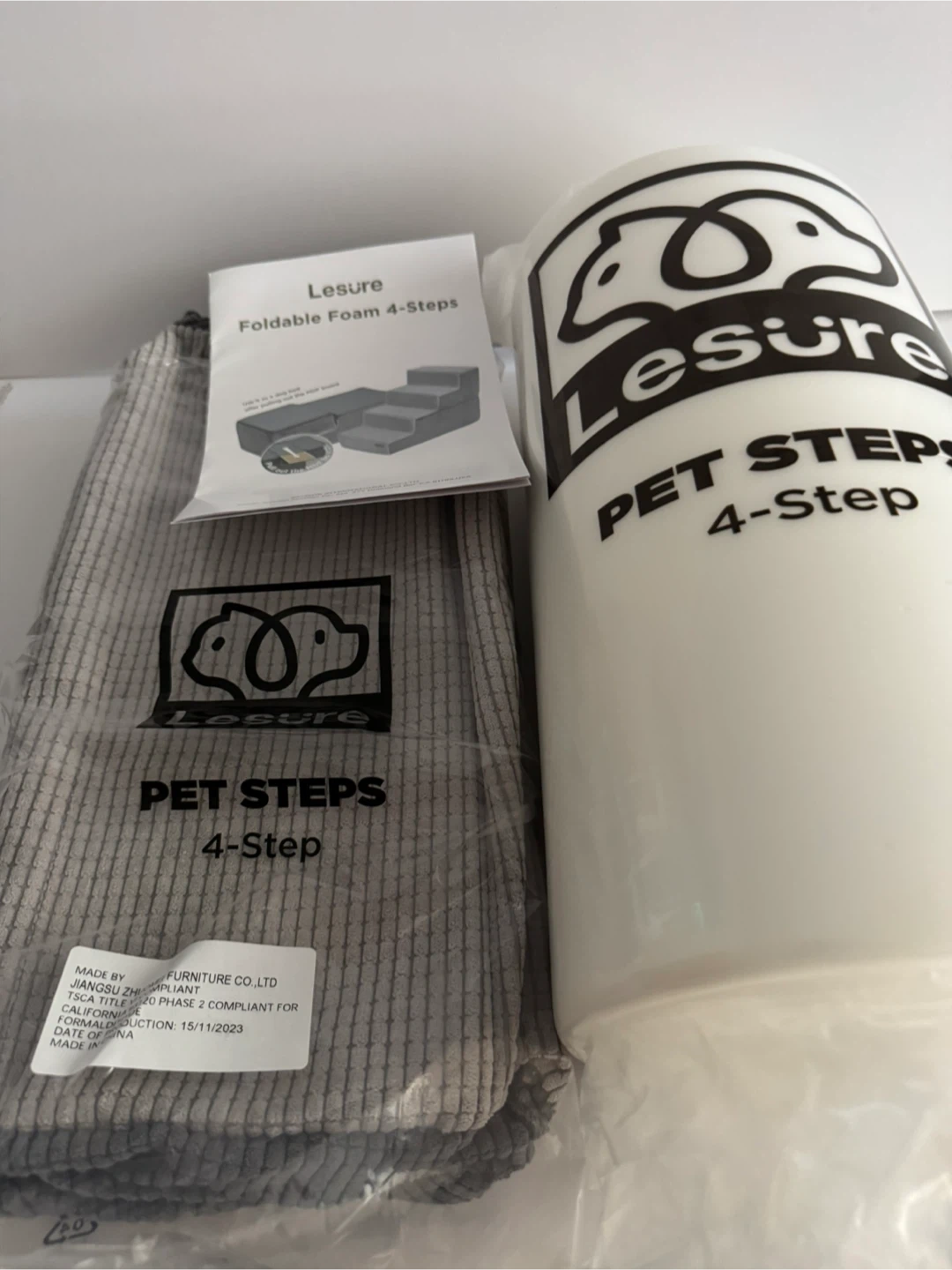82Brand new Lesure Foldable Foam 4-Steps Pet Steps. This is a great aid for your furry friend to reach higher places like sofas or beds. It comes in its original box