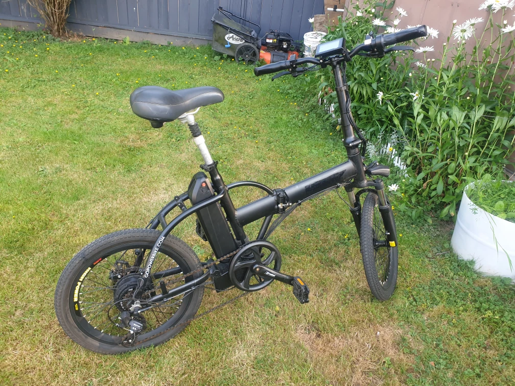 Gocity E Bike 48v with 20 inch wheels has punctureless tires is All Black its Foldable has USB outlet its a Fast Fun way to Comute and is Aluminum $600