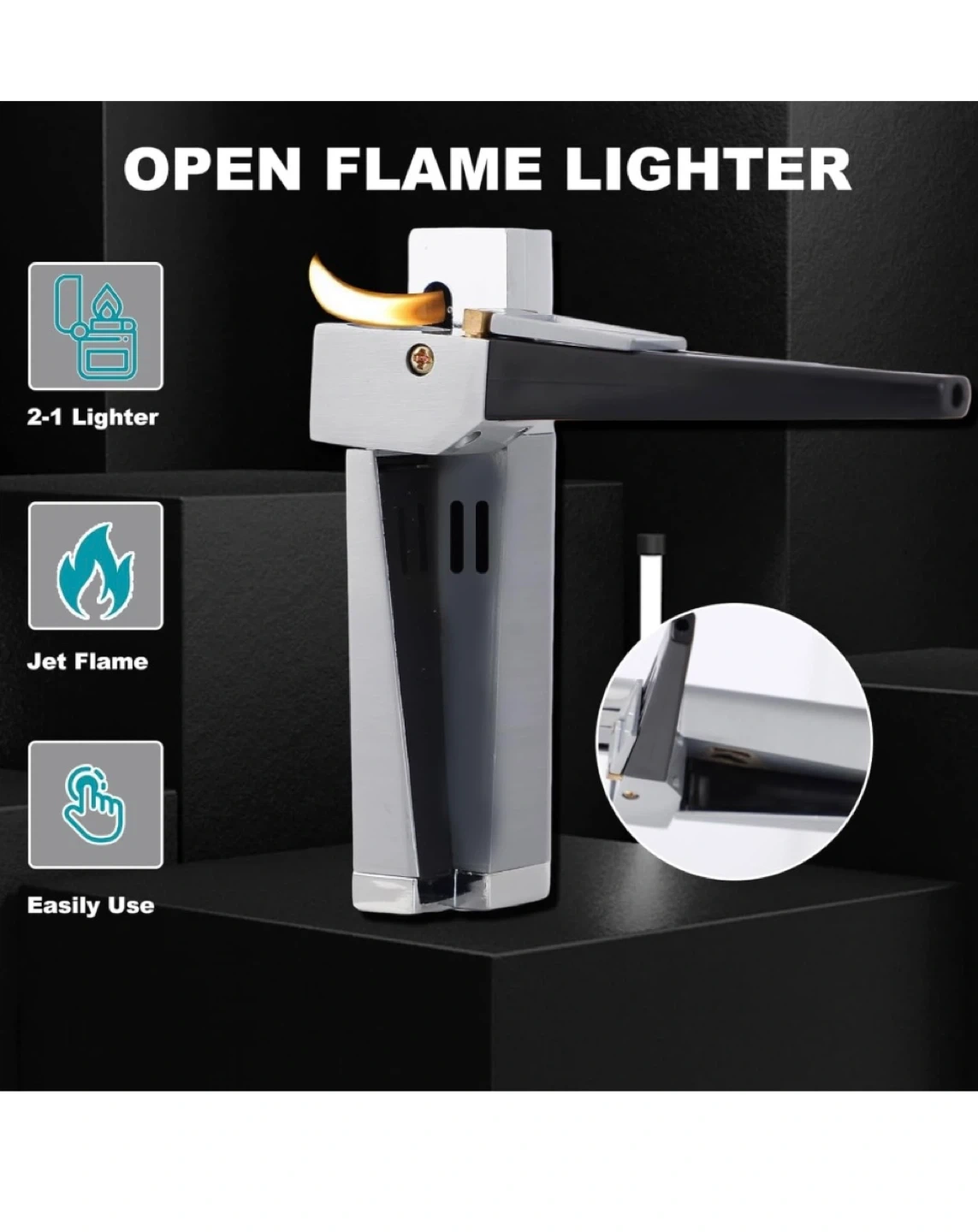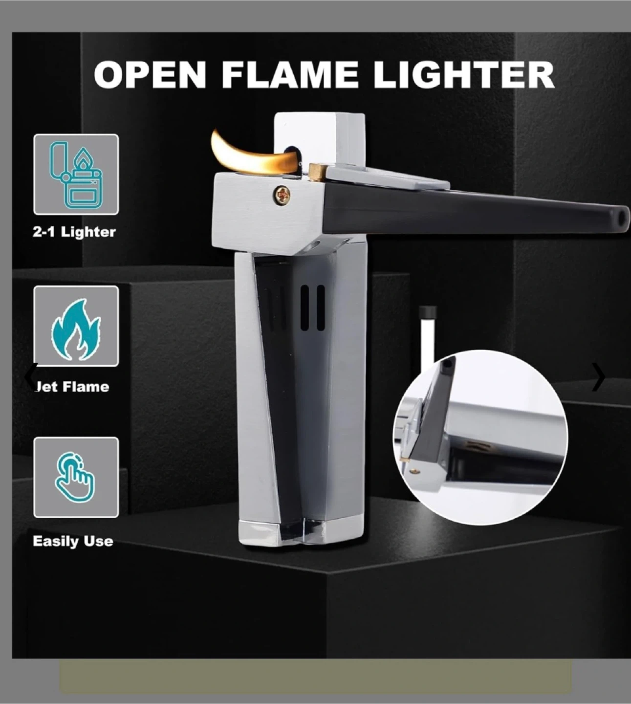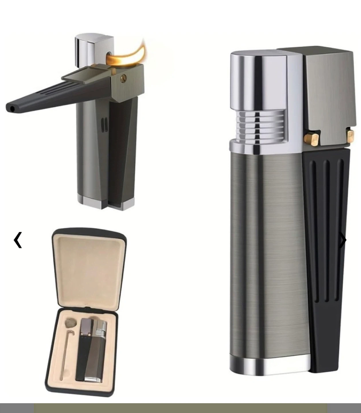 Selling a foldable metal lighter that's both retro and portable! It's a 2-in-1 design, so it can be used in multiple ways. It comes with a leather gift box, making it a great set. It's also refillable with butane gas and provides a soft flame. Originally bought for $25.90+ tax on Amazon. Makes an excellent Christmas gift or stocking stuffer!