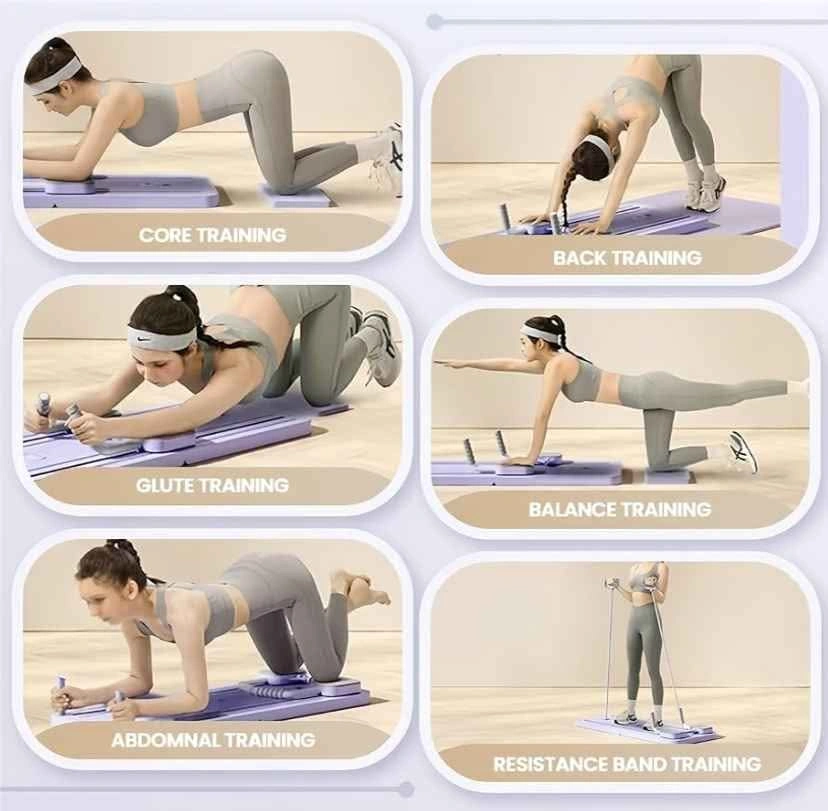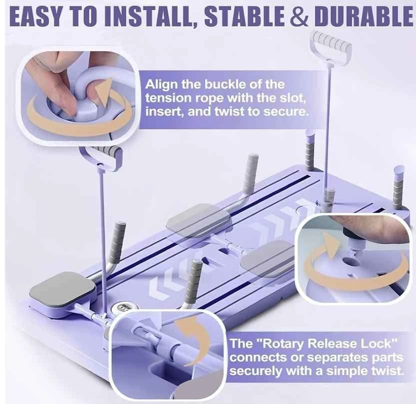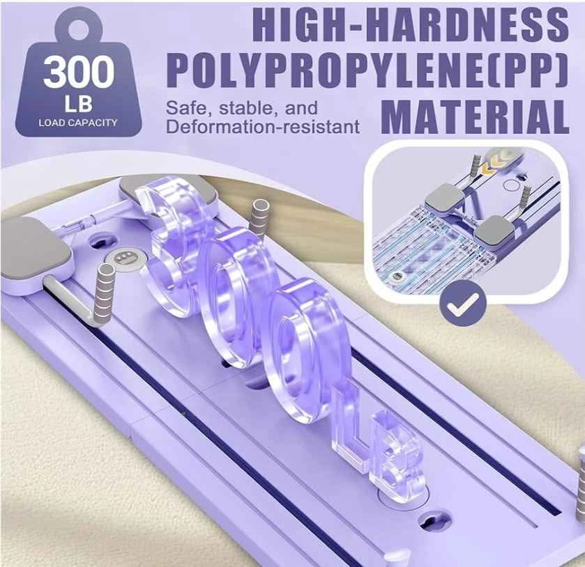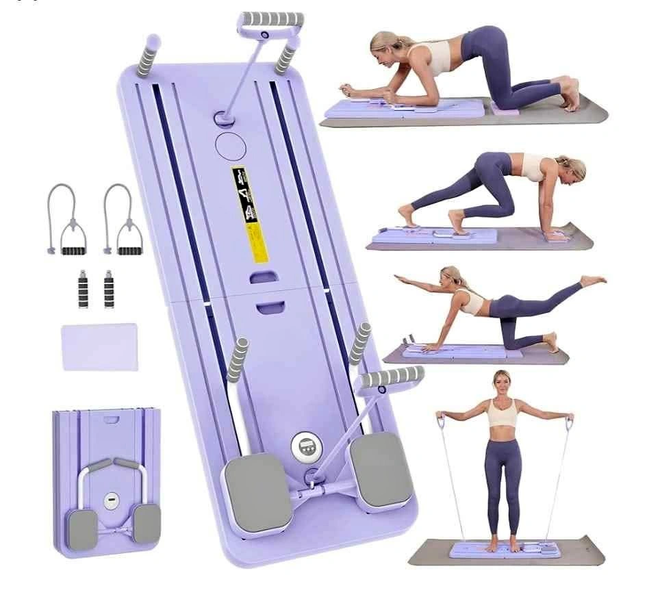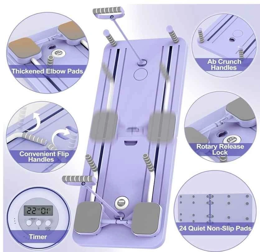 Foldable Pilates Board, Multifunctional Ab Board Automatic Rebound, Full Body Exercise Equipment for Home, Pilates Reformer with Elbow Support&Resistance Bands&Ab Mat&Handles