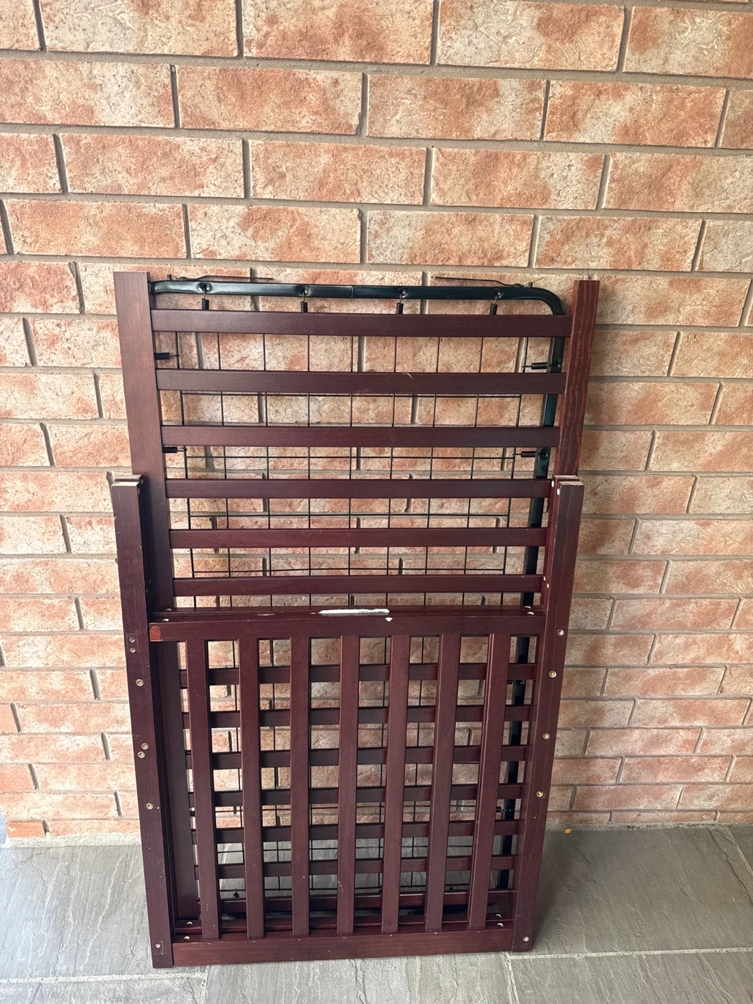 15Selling a foldable wooden crib in brown. It's in great shape and ready for a new home! Perfect for saving space when not in use